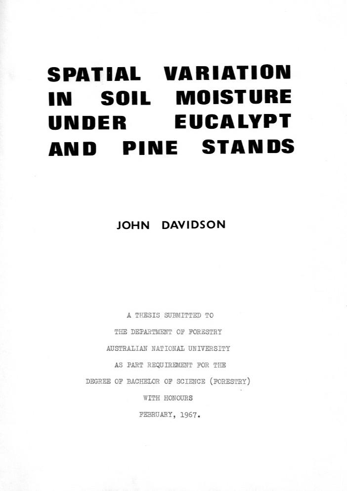 3 Individual subject units taught at the Australian Forestry School/ANU in 1965 – 1966 included Logging, Major Forest Products, Forest Pathology, Minor Forest Products, Seasoning and Preservation, Plantation Establishment, Engineering I, Engineering II, Wood Structure and Identification, Utilization I, Utilization II, Foundations of Silviculture, Statistics, Statistical Method, Aerial Photography, Dendrology, Entomology, Forest Finance I, Forest Finance II, Fire Control, Forest Soils, Forest Mensuration, Forest Surveying, Forest Policy and Forest Management.