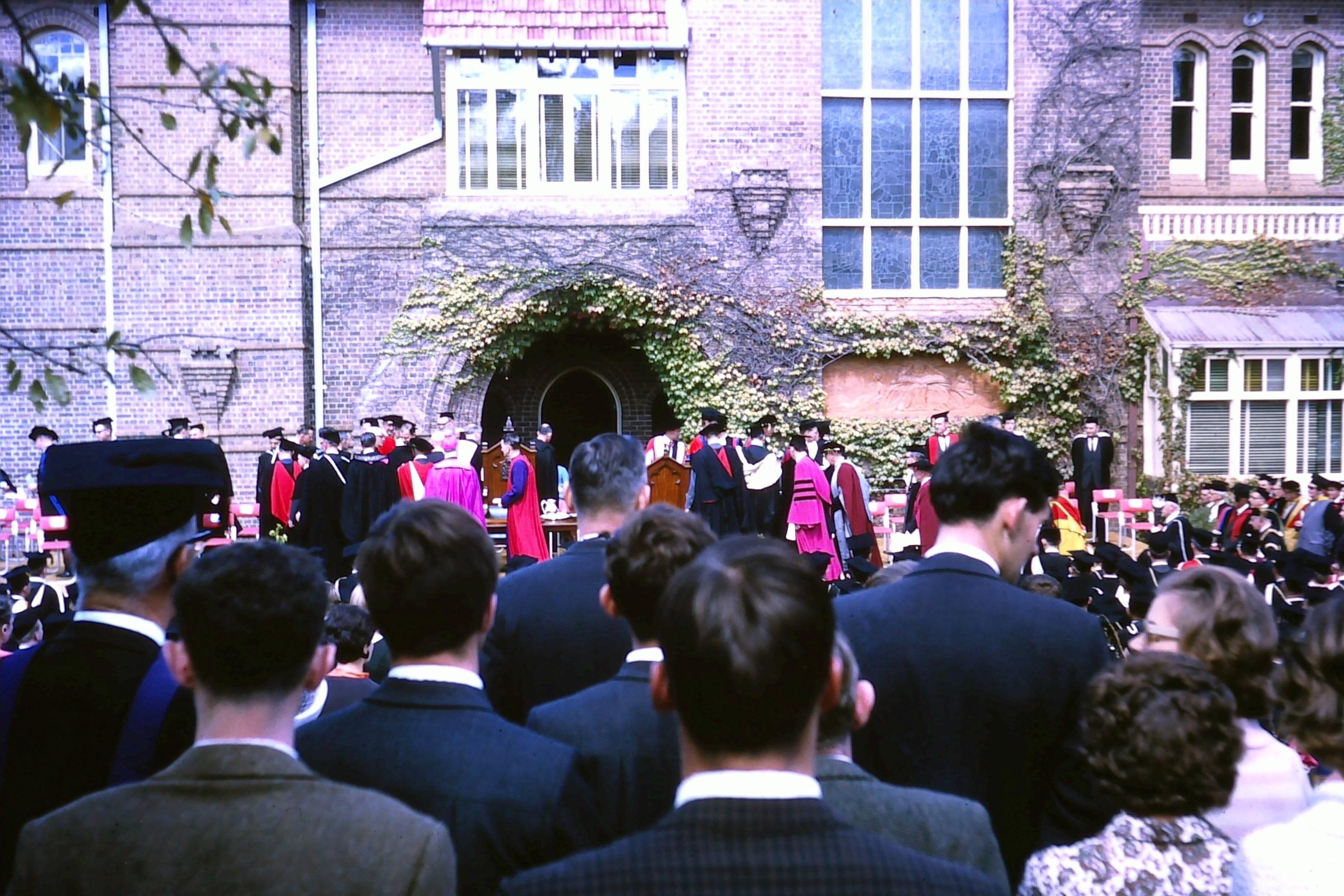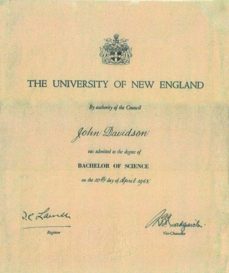 Celebration of another kind took place on Saturday 10 April 1965 at the UNE, with the Degree of Bachelor of Science conferred on me at a sunny open-air ceremony in the Northern Court in front of Booloominbah.