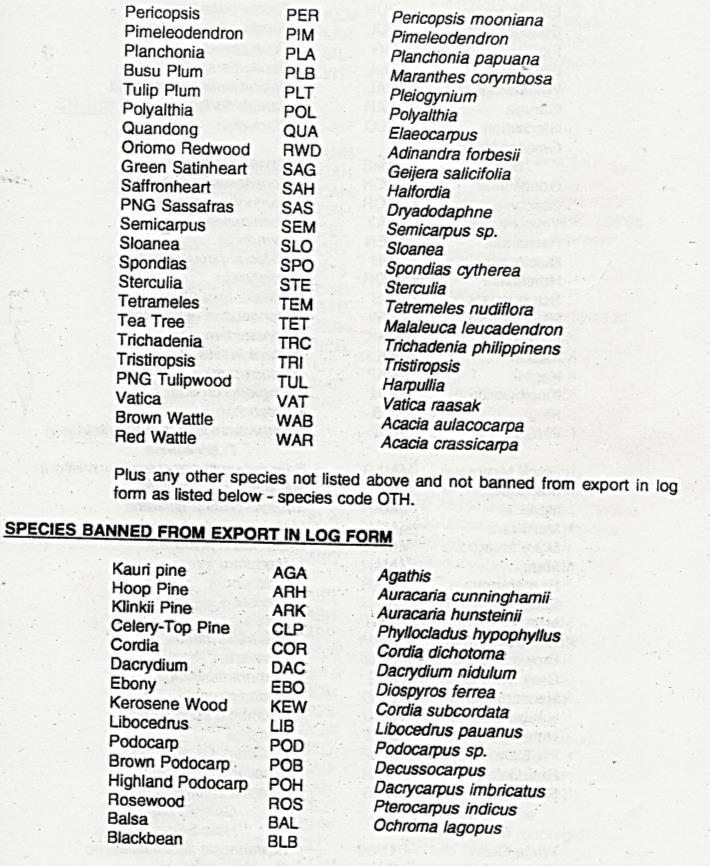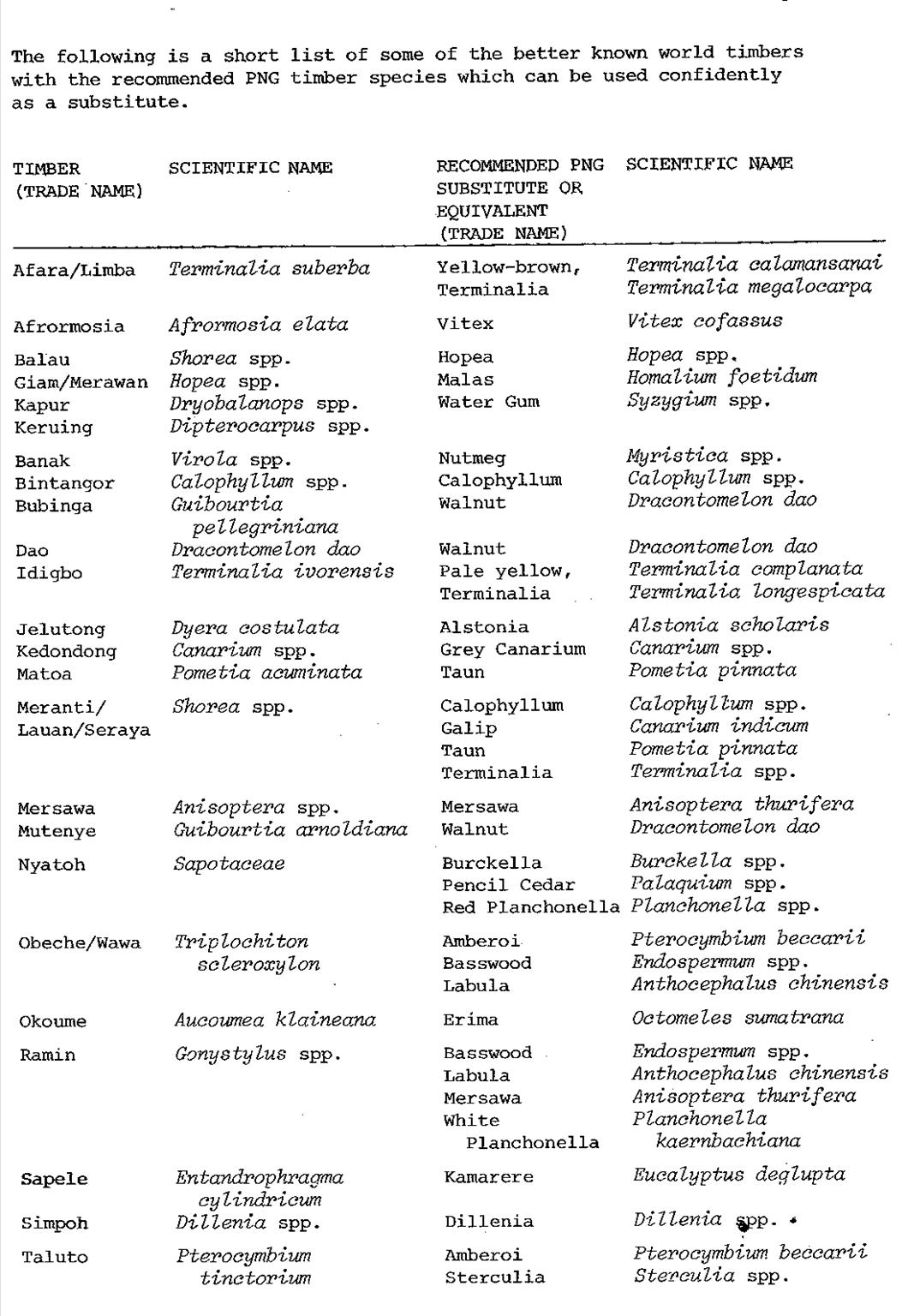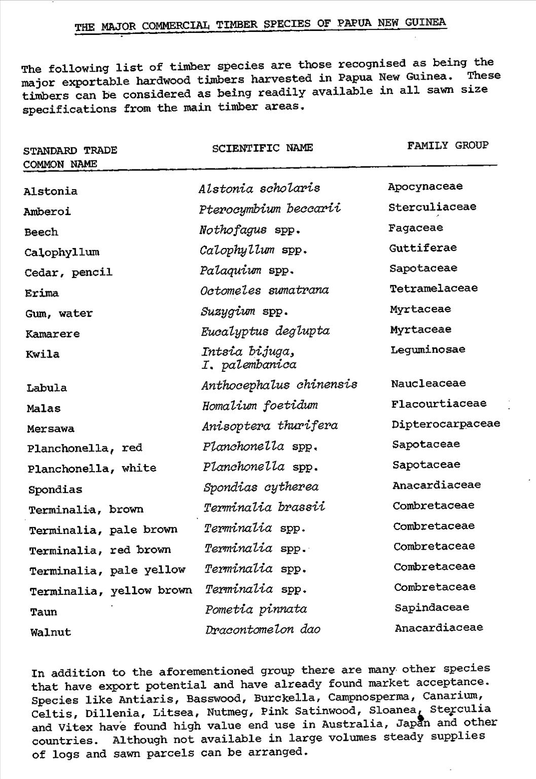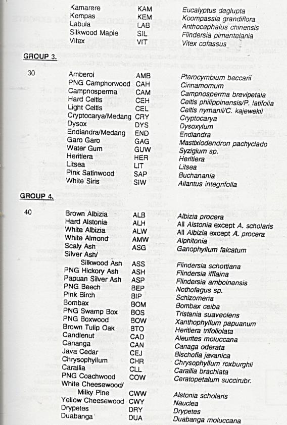 Forest Industries Council 198527 detailed a PNG Timber Trade Classification of species.