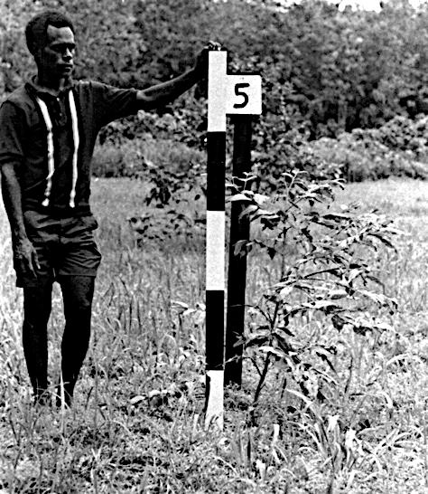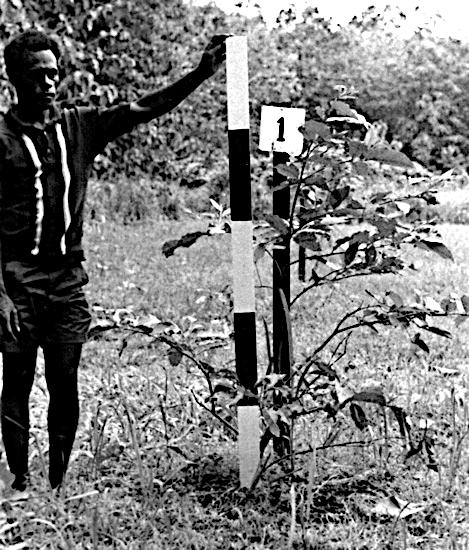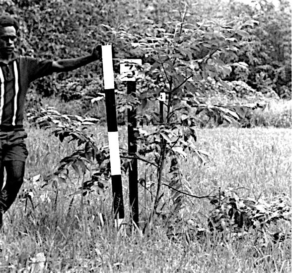 The chosen planting area was Nauti LA Compartment 1A off Road 53, near the Watut River. The lines were planted in July 1971, and given an initial measurement by Bob Johns and Toni on 27 July 1971.