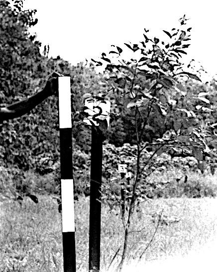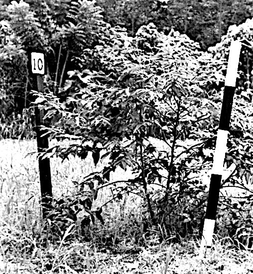 Jeff Fairlamb remeasured the line plots on 5 December 1972. They had been severely affected by a lack of weeding and many stems were dead or missing especially near the road (Road 53). Results were: