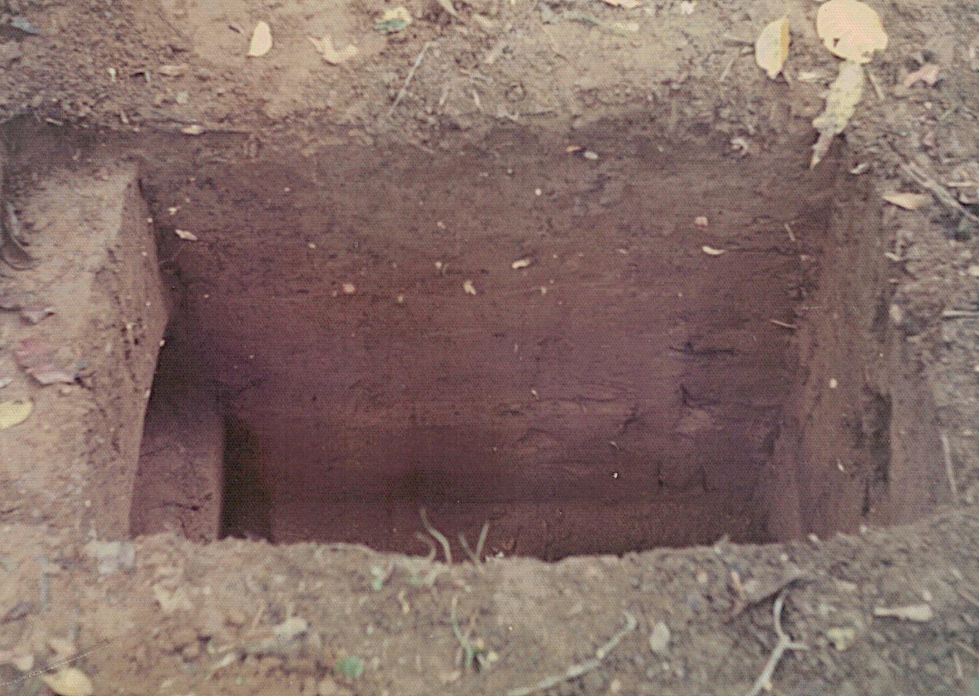 Top left and right: Gogol land classified as “7. Poorly Drained River Terrace Forest” (bordering on “5. River Floodplain Forest”). Water was flowing over the surface after rain. Left: A soil pit dug at this location filled with water because the water table was at the surface and drainage was poor. Estimated site quality for E. deglupta: Class 4. Below: Soil pit in land classified as “8. Well drained River Terrace Forest”. Estimated site quality for E. deglupta: Class 2 3.