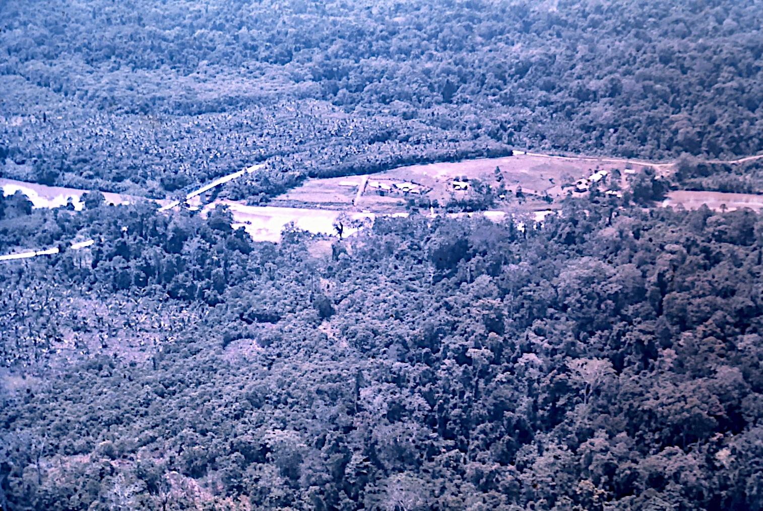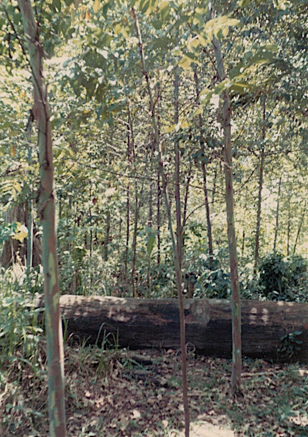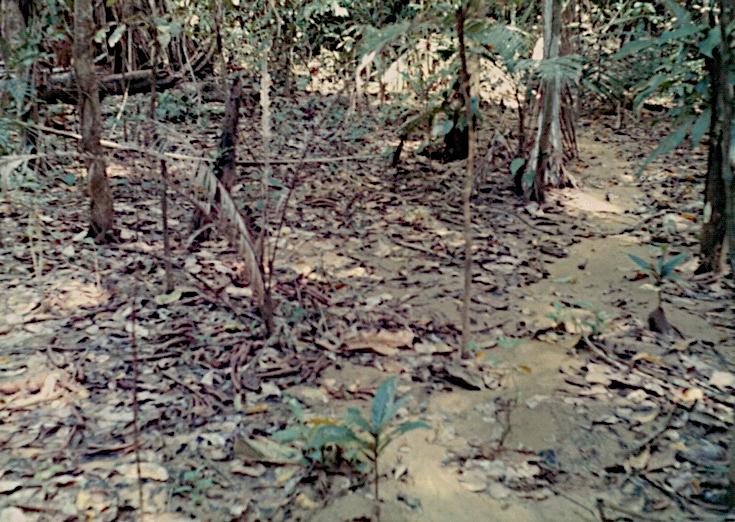 A 20 acre (about 8 ha) area of typical lowland rainforest at Baku was subjected to a simulated pulpwood logging in 1972 (photographs next page).