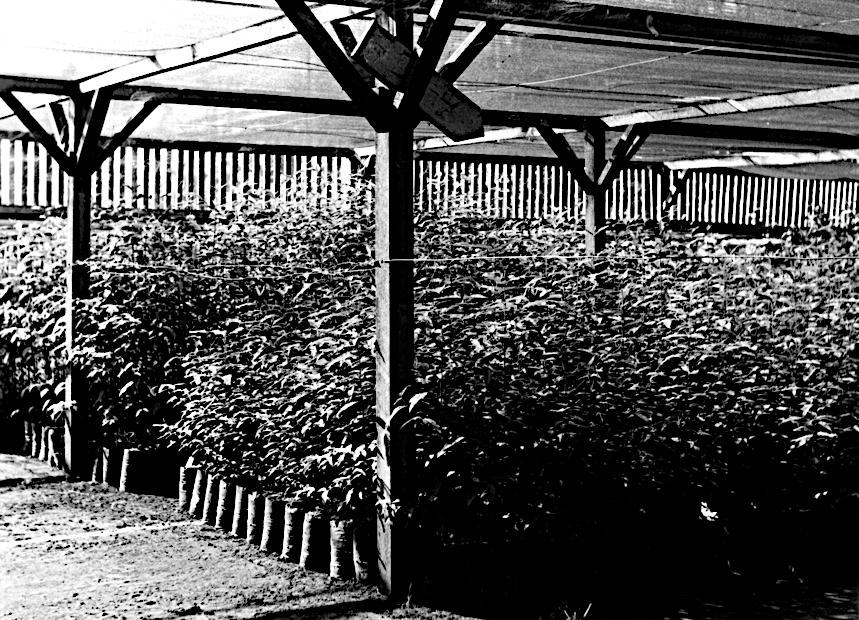 These were assigned PNG seed batch numbers at HQ. After some delay, quantities of each of these four batches were received by the Department of Forests, Bulolo, and receipt acknowledged by letter drafted by N H S Howcroft and signed by K J Hart, Acting Officer in Charge on behalf of J L R Godlee. Apparently, Neville Howcroft took charge of the seed intending to establish a provenance trial. He arranged for the sowing of 23 trays from 1 to 11 September 1970. Germination took place from 5 to 17 September. On 16 September a letter was sent to HQ, requesting instructions on the design, area of plots and spacing to be used. Kevin White, then Assistant Director, Silviculture, wrote back 29 September directing the proposal to be reduced to a single planting on a rainforest site, planted in blocks of four rows, one row each provenance. Another exchange took place on 21 October and 30 October about spacing and area to be planted for each provenance. The outcome was for a spacing of 9 x 9 feet (about 2.75 x 2.75 m) and general block planting by provenance after stock had been allocated to the line plots, each of about 20 trees (8 line plots, 2 for each provenance were actually planted).