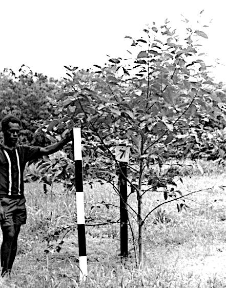 ii) Seedlings in each family of known female parentage would almost certainly be the result of random mating with nearby male parents of unknown and variable pedigree. To cull very early three out of the four individuals at each planting location leaving only the best was an easy and effective method for early upgrading of the quality of the orchard.
