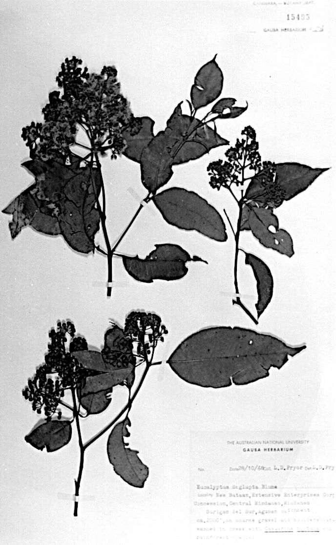 56 Pinyopusarerk K, Gunn B V, Williams E R and Pryor L D 1993 Comparative geographical variation in seedling morphology of three closely related red mahoganies, Eucalyptus urophylla, E. pellita and E. scias, Australian Journal of Botany 41:23 24 and, Pryor L D, Williams E R and Gunn B V 1995 A morphometric analysis of Eucalyptus urophylla and related taxa with descriptions of two new species, Australian Systematic Botany 8:57 70.