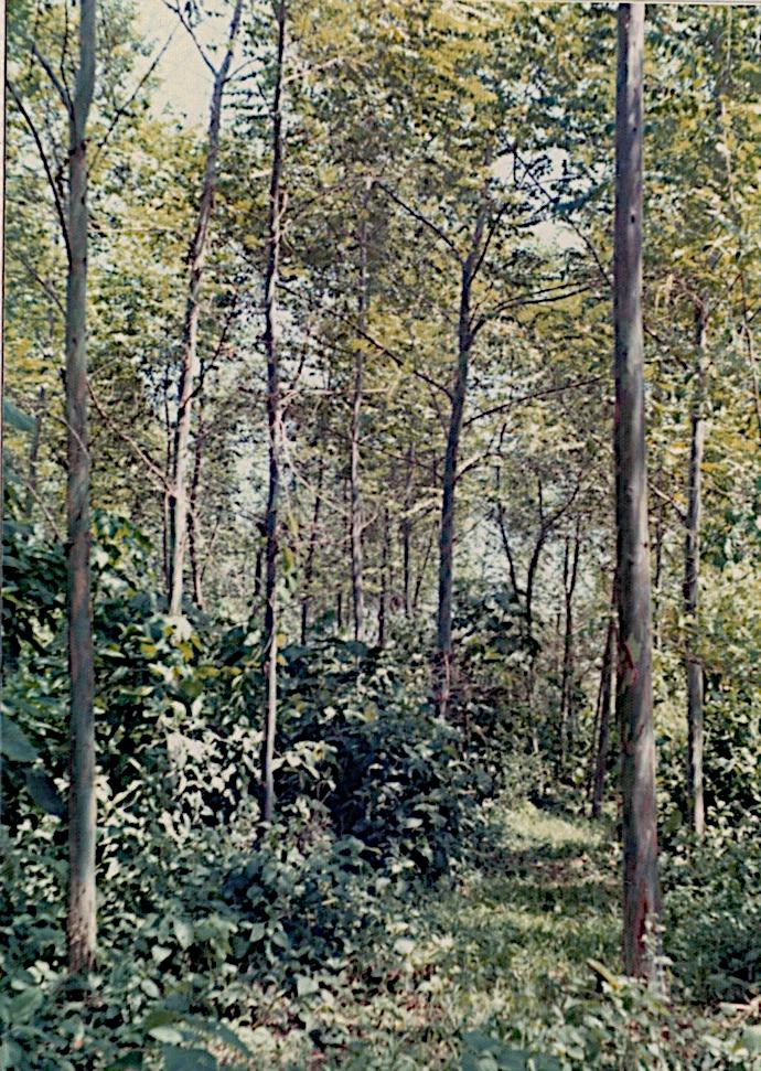 Planting of the blocks at Bulolo took place from October 1971. The whole planting (the 8 lines of 20 trees each, plus the four blocks) originally occupied about 12.7 acres (about 5 ha).