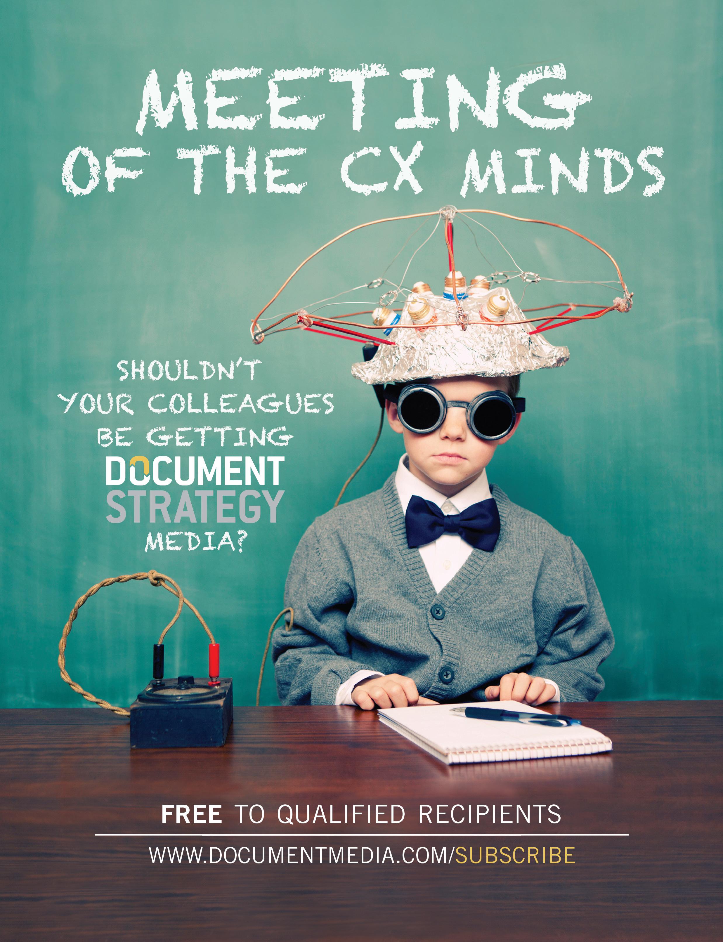 SUBSCRIPTIONS: DOCUMENT Strategy Media is the essential publication for executives, directors, and managers involved in the core areas of Communications, Enterprise Content Management, and Information Management strategies. Free to qualified recipients; subscribe at documentmedia.com/subscribe.