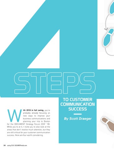 ith 2018 in full swing, you’re probably already focusing on new ways to improve your business communications and planning your trip to Boston for the DOCUMENT Strategy Forum (DSF ’18). While you’re at it, I invite you to also look at the areas that don’t receive much attention, but they are still critical for your customer communication success. Here are four worth considering.
