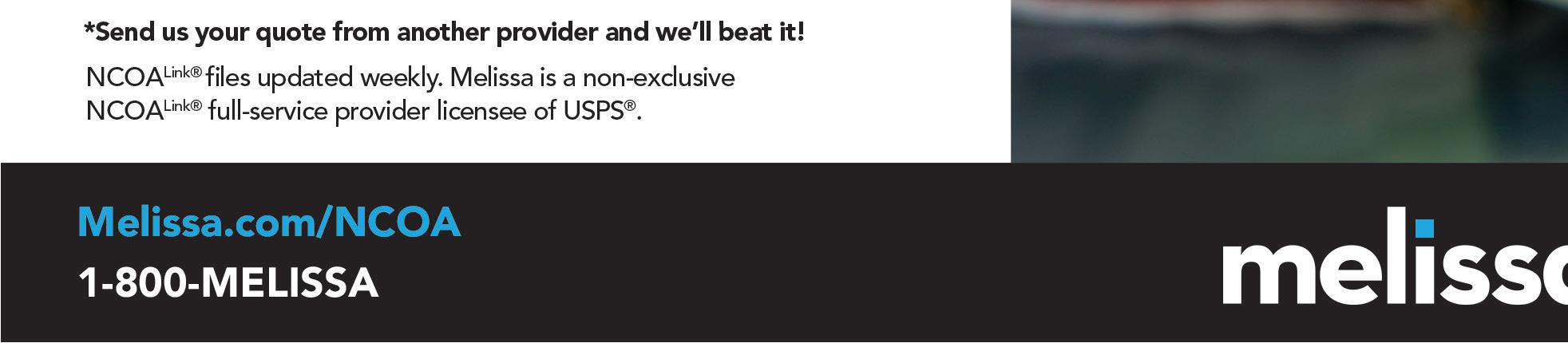 Since the pandemic, Vote by Mail has continued to increase in popularity, offering convenience and better accessibility for voters. Ensuring address accuracy by identifying voters who have moved contributes to a well-managed election process — helping to reduce the cost of waste and UAA mail, strengthen voter trust, and maintain election integrity. As a USPS® NCOALink® Full-Service Provider Licensee, Melissa matches existing voter lists against the last 48 months of permanent changeof-address records filed with the USPS, and offers proprietary change-of-address processing using reliable, multi-sourced data to identify those who don’t file a notice. Be sure to take advantage of our limited time offer – free list processing for states and counties — call for details!