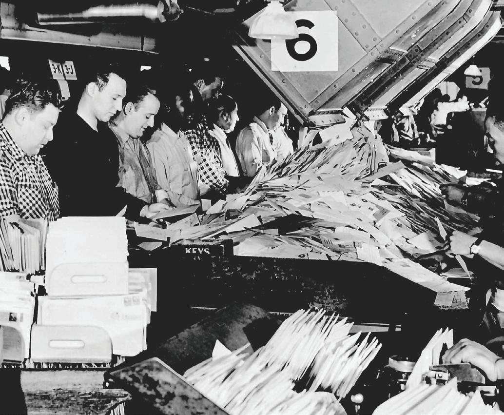 As the American population and economy grew, so did the number of mail pieces entering the mail stream on a daily basis, and new technology allowed pieces to reach their destinations more quickly. On May 15, 1918, for example, the Post Office Department began airmail service between New York and Washington, D.C., via Philadelphia — the nation’s first regularly