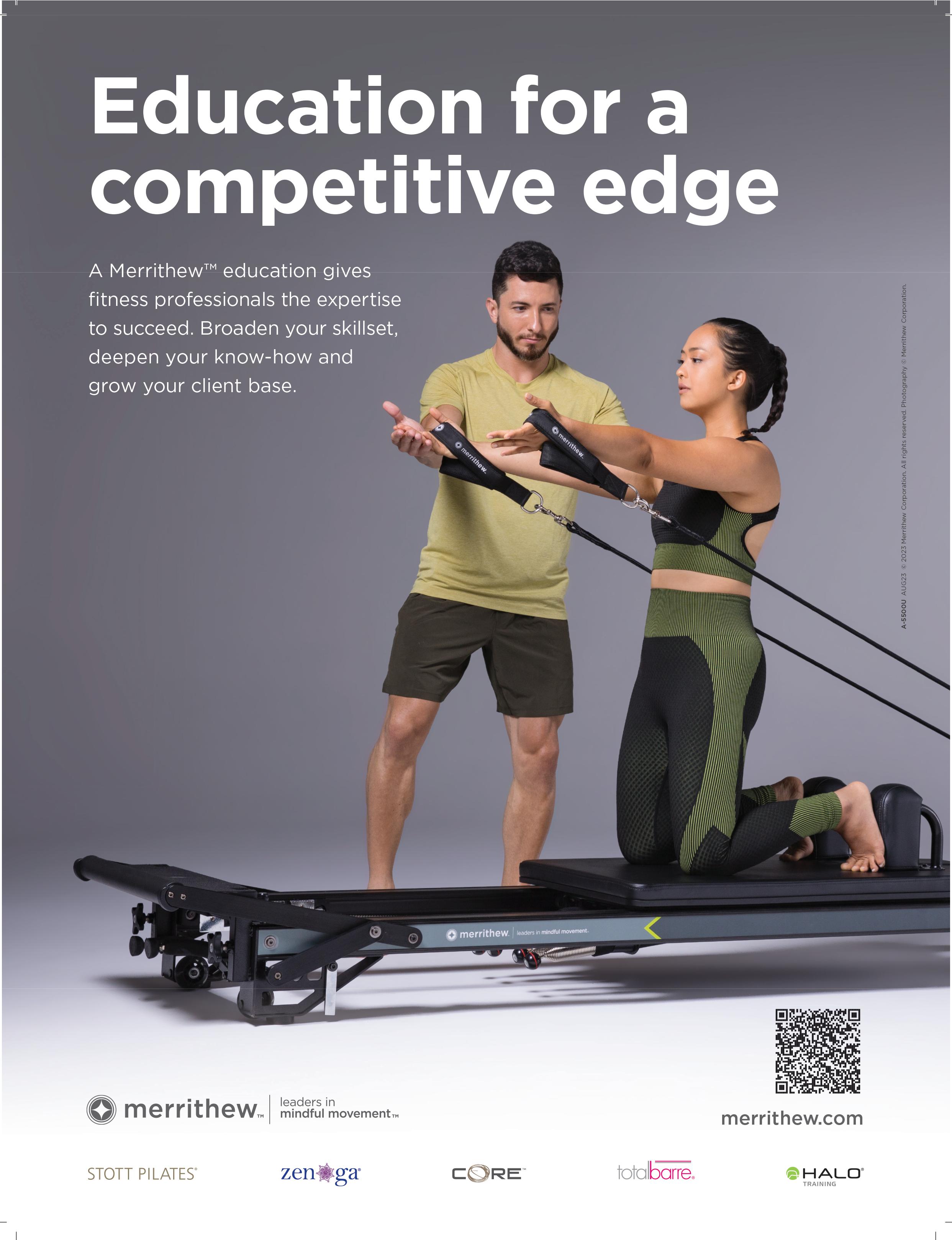 Over the last three decades, Merrithew’s mind-body education programs have evolved based on the latest research in health and fitness. Working with a team of physical therapists, sports medicine and fitness professionals, Merrithew has created results-driven programming for exercisers of all ages, levels and abilities. Its mind-body education programs include: STOTT PILATES®, STOTT PILATES Rehab, ZEN•GA®, CORE™, Total Barre ®, Halo ® Training and Merrithew™ Fascial Movement.