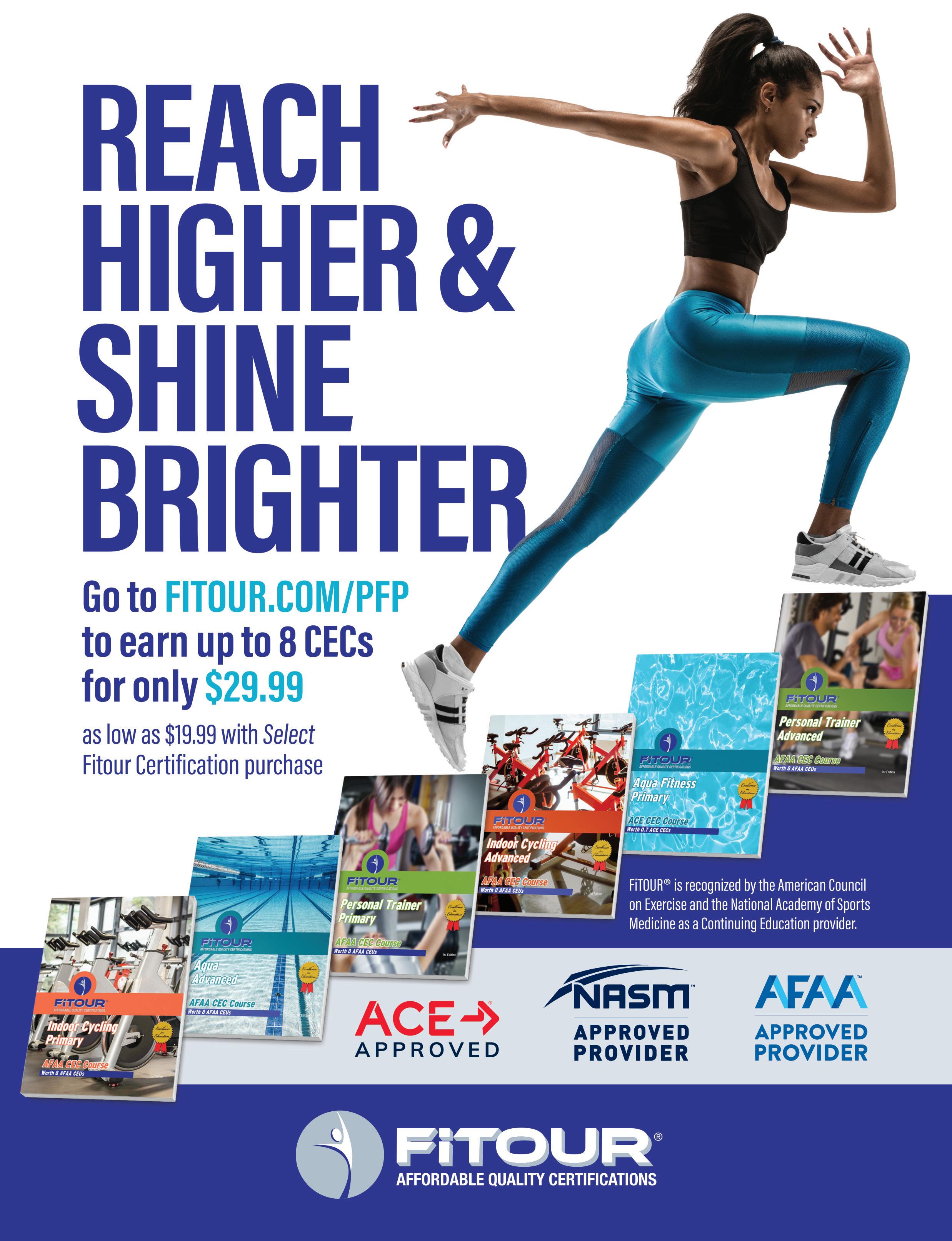 FiTOUR® Certifications' latest programs are a step in the right direction for fitness professionals who are looking to confidently expand their scope of practice and help clients attain wellness goals. Since 1989, FiTOUR® is known for affordable, comprehensive, cutting-edge certifications grounded in exercise science and guidelines for safe and efficient health and fitness practice. FiTOUR® has created two certifications, FiTOUR® Primary Nutrition Certification: Theory Application; and FiTOUR® Advanced Nutrition Certification: Practical Application, that will allow trainers to make a real quantifiable impact on clients’ lifestyles. Trainers can address objectives of nutrition like: why proper nutrition is important; successful nutrition mindset; energy balance; portion and serving size control; and how to read nutrition fact labels.