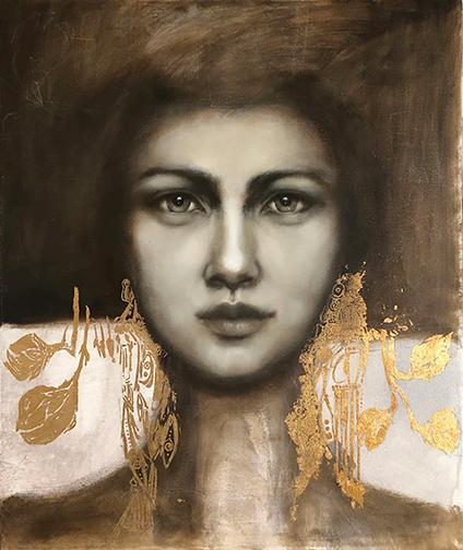 Dejar ir “Rosemarie” Oleo y papel oro 76. 5 x 64 cm. 2019