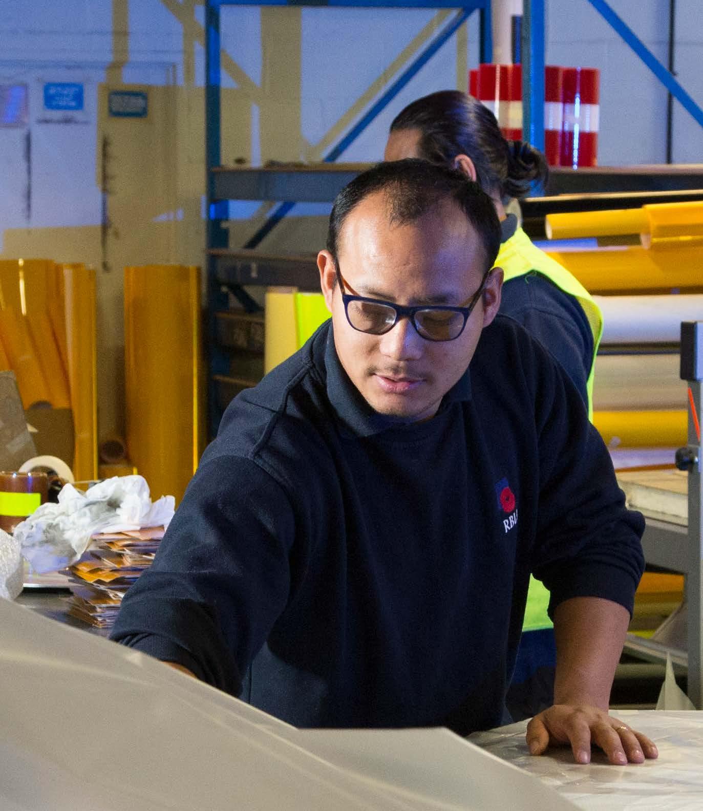Christmas presents wrapped by our Leatherhead fulfilment team pallets made in our factories per week of vinyl printed each week to make road, rail & other signs