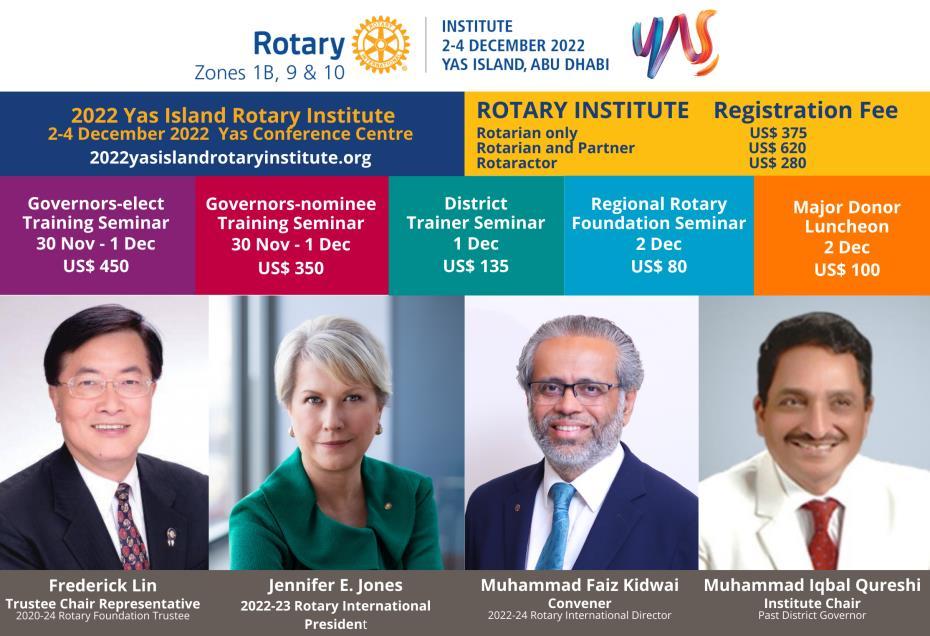 PND Ady Ilano and her daughter Rotarian, Klyr Ilano, attended the Yas Island Rotary Institute 2022 held in Abu Dhabi, UAE last December 2-4, 2022. The motherdaughter tandem experienced such opportunities for learning and skill development in topics such as membership, public image, and The Rotary Foundation, as well as networking and interaction with other Rotarians of countries coming from Zones 1B, 9 & 10.