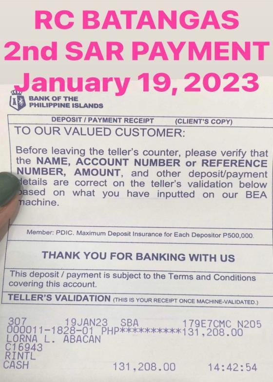 The ROTARY CLUB of BATANGAS, under the imaginative leadership of GSP Arnel Pulla, paid the 2nd SAR assessment for 66 Active members of 2nd Semester – RY 2022-2023 for a sum of Php 131,208.00; that was transacted via BPI online banking last January 19, 2023.