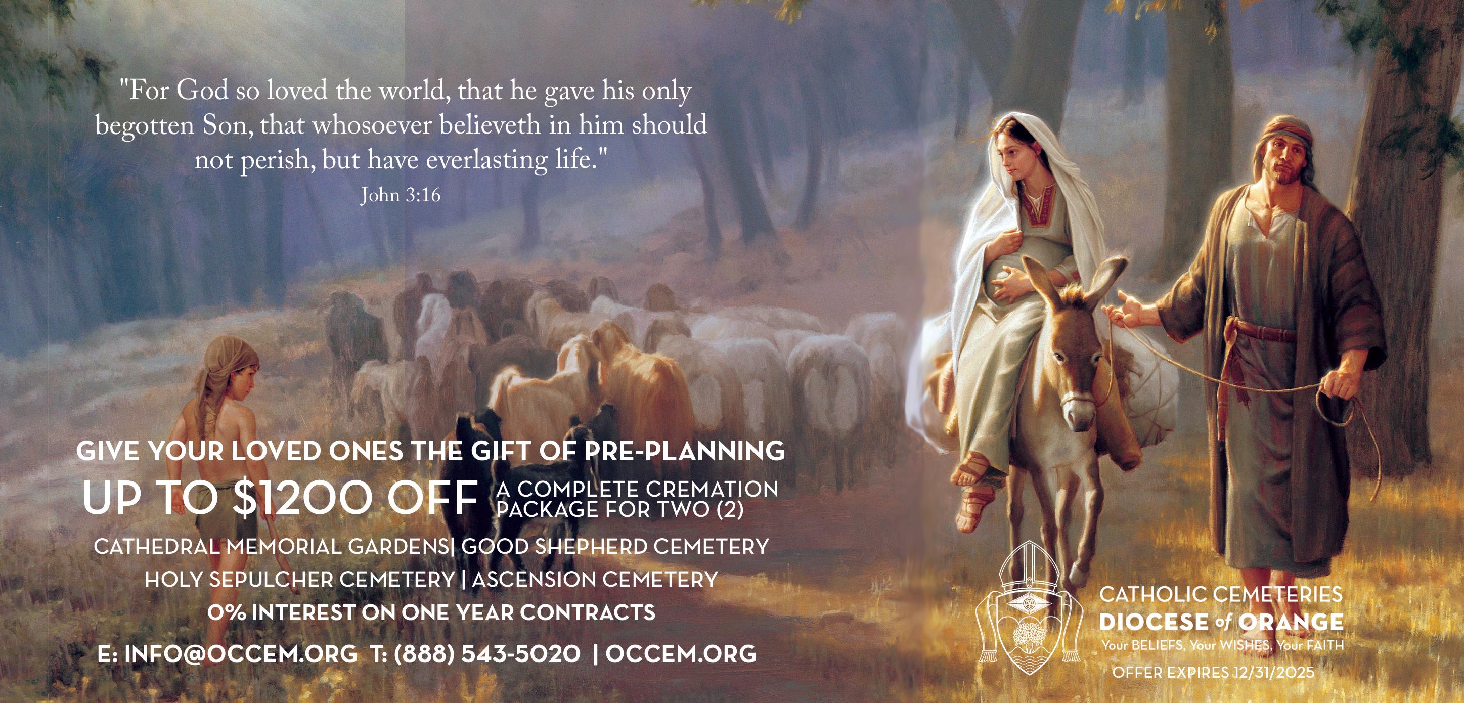 Delivered weekly to parishes and homes throughout Orange County, Calif., Orange County Catholic is published by SCNG Custom Content, a division of Southern California News Group that offers content development and design expertise to businesses and nonprofit institutions. The Orange County Catholic editorial staff and editorial council are responsible for the content contained herein. Events and products advertised in Orange County Catholic do not carry the implicit endorsement of the Diocese of Orange or SCNG Custom Content.