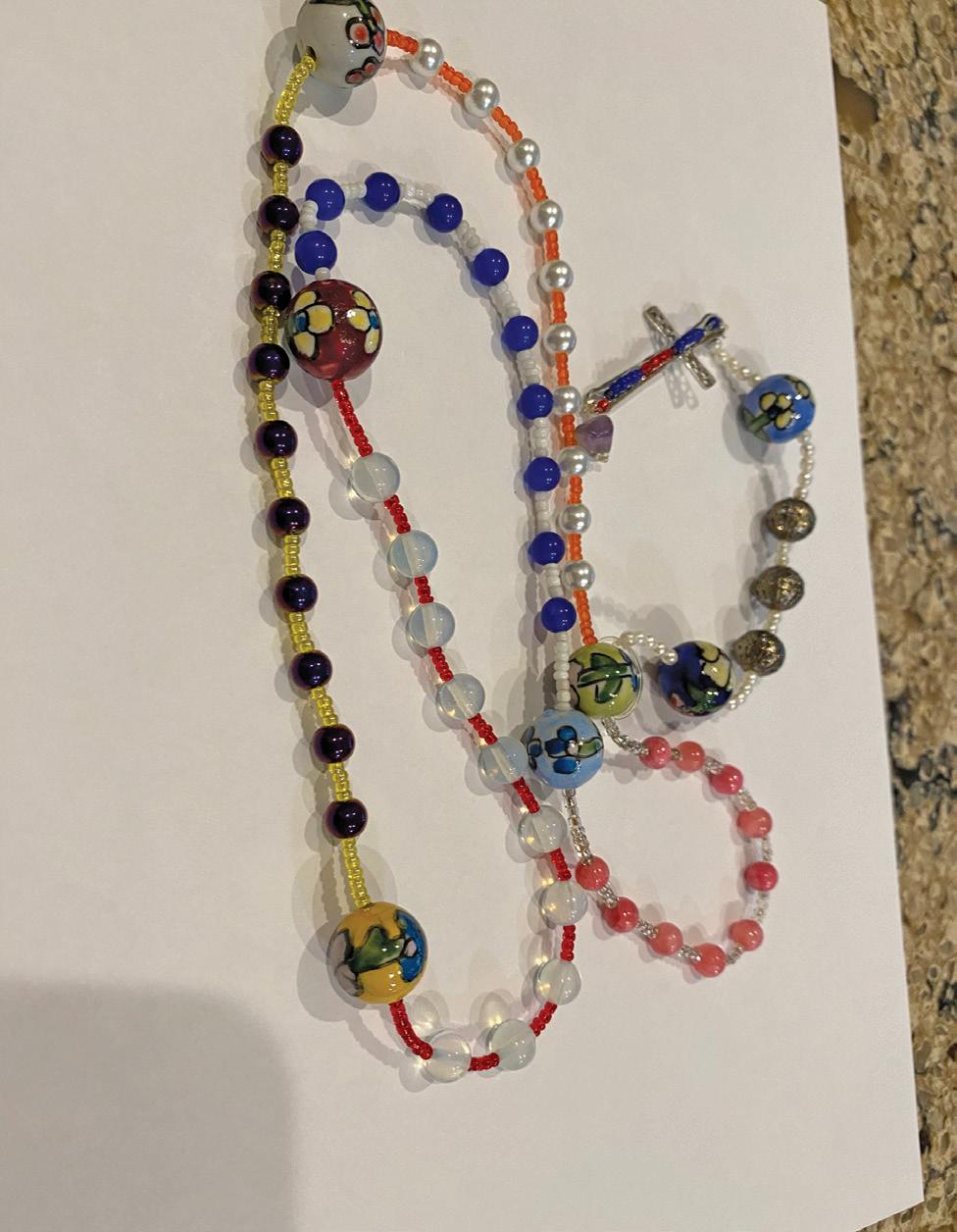 When I was visiting the Missions, I saw the article about Rosaries. My grandson, Gabe, and his wife, Victoria, made this beautiful Rosary for me for my birthday. — Carole Ginzl, Holy Family Parish in Jacksonville, FL.
