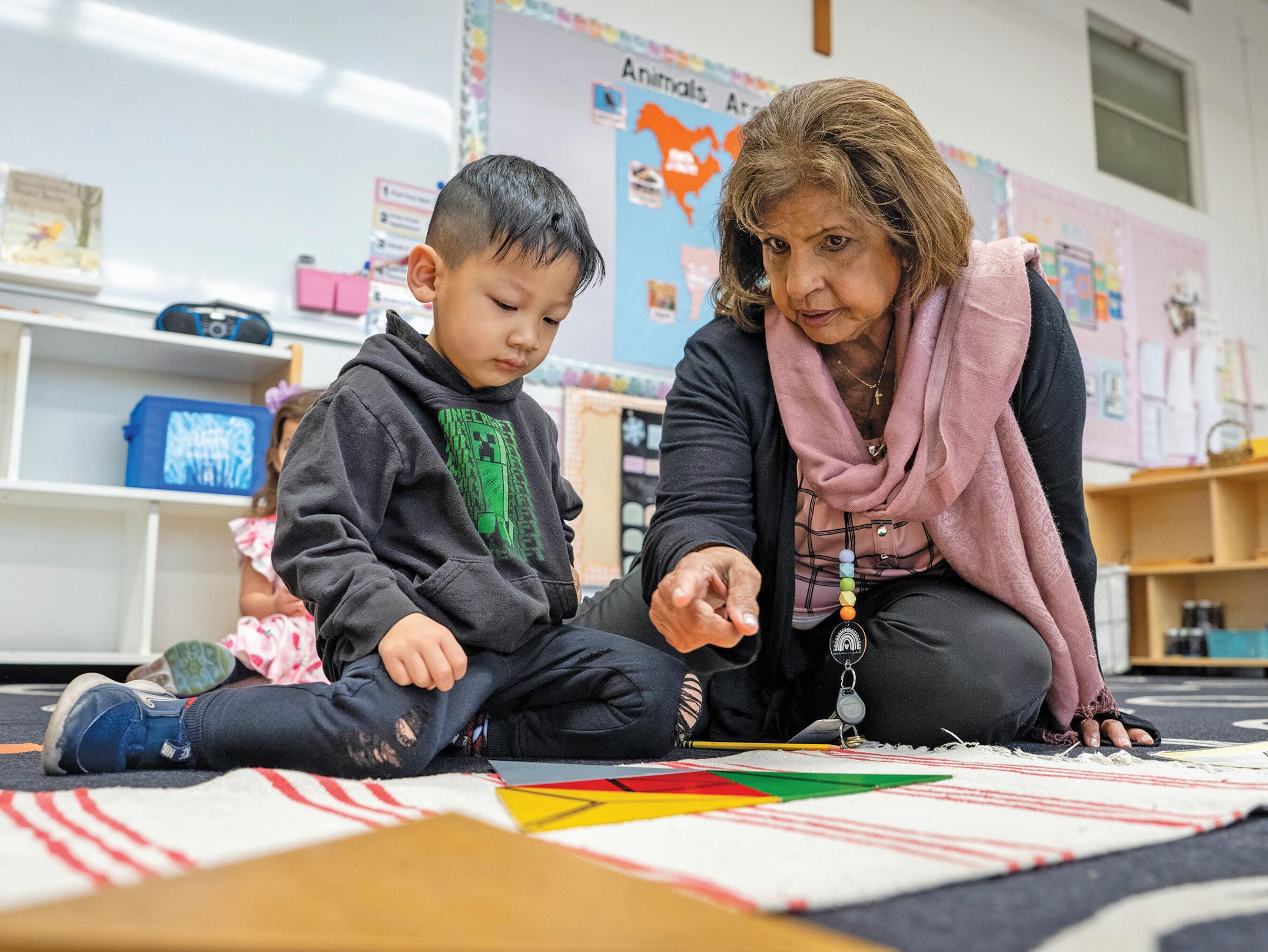 A veteran who ran her own school in Cerritos for 25 years, Joseph, who at 80 years old has no plans to retire, brought the Montessori approach to St. Columban in 2010. The preschool started with just 12 students, but within three months it had 45.
