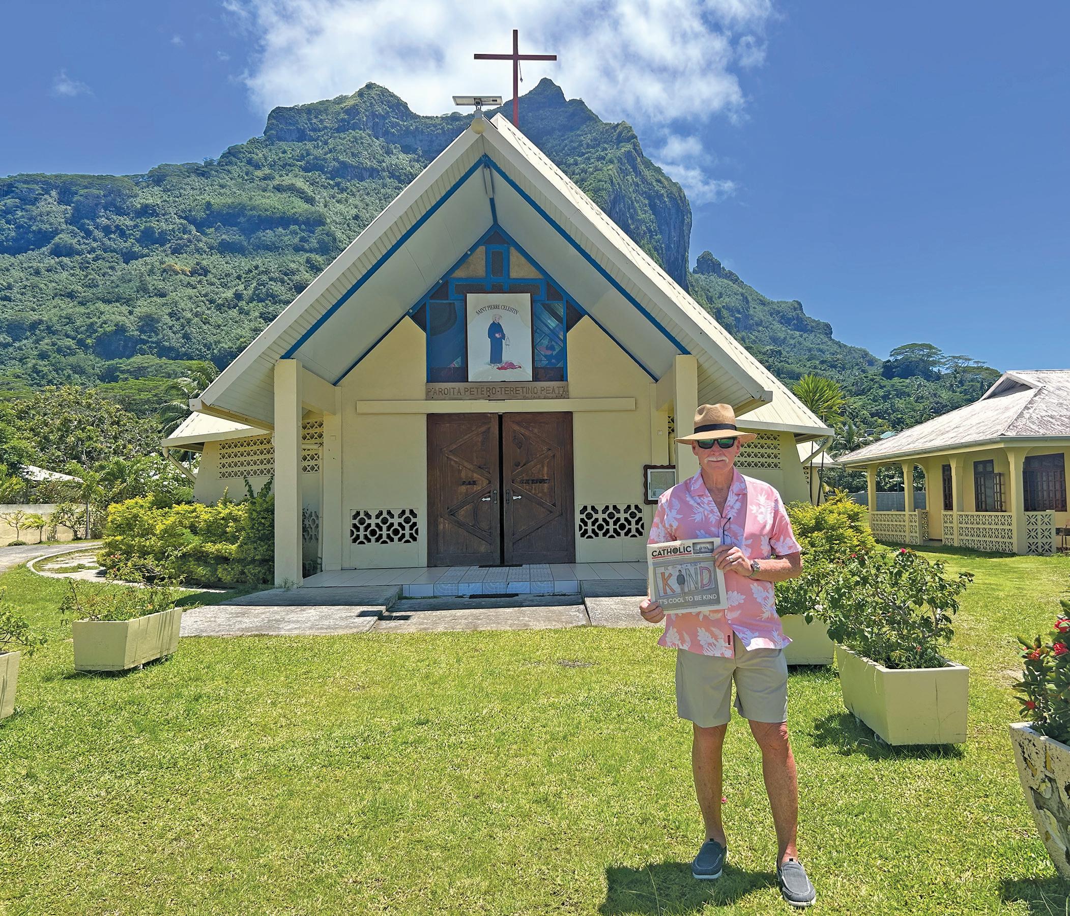 When we visited Bora Bora, I took this picture of my husband, Jim Ellis, outside the beautiful Catholic church named St. Peter or Paroisse Saint Pierre Celestin Church. This picture was taken on Dec. 8, the Feast of the Immaculate Conception.