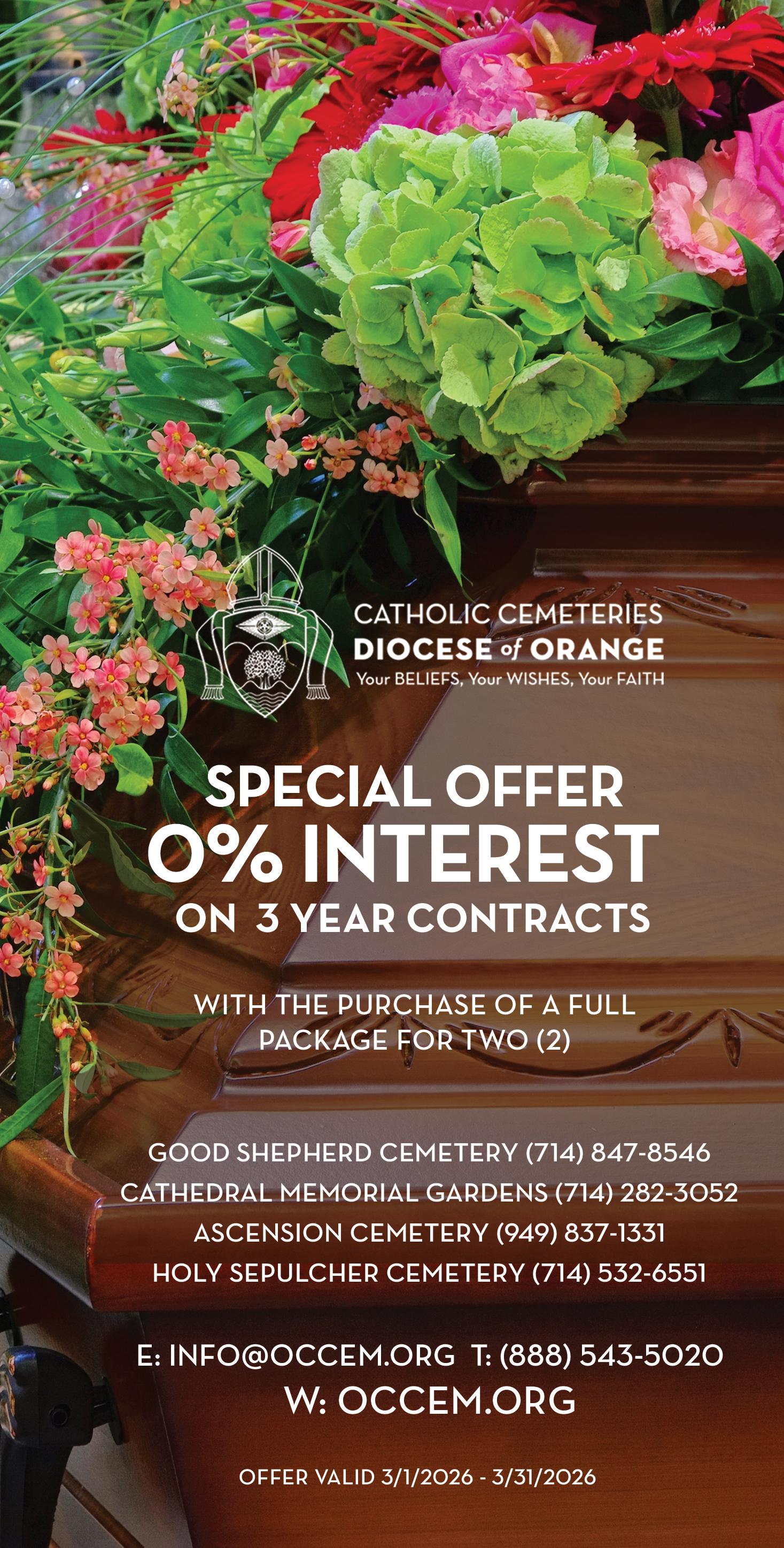 The Official Newspaper of the Roman Catholic Diocese of Orange Diocese of Orange Pastoral Center, 13280 Chapman Ave., Garden Grove 92840