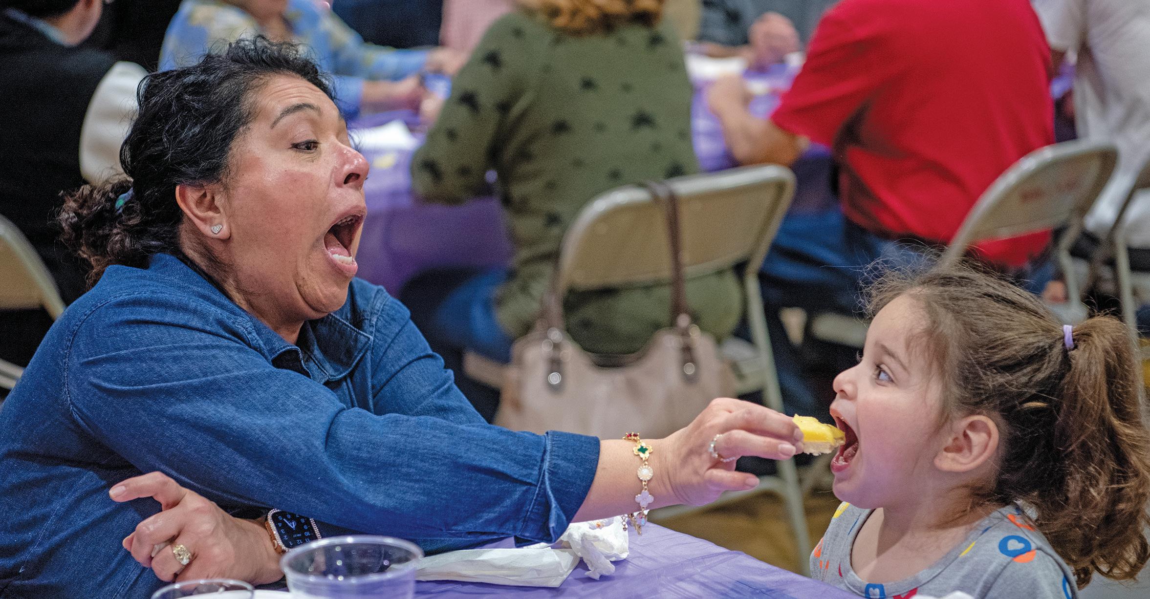 LUCY MEDINA OF ALISO VIEJO FEEDS HER GRANDDAUGHTER, LUCY CHOATE, 2, DURING A MISSION BASILICA FISH FRY IN SAN JUAN CAPISTRANO.