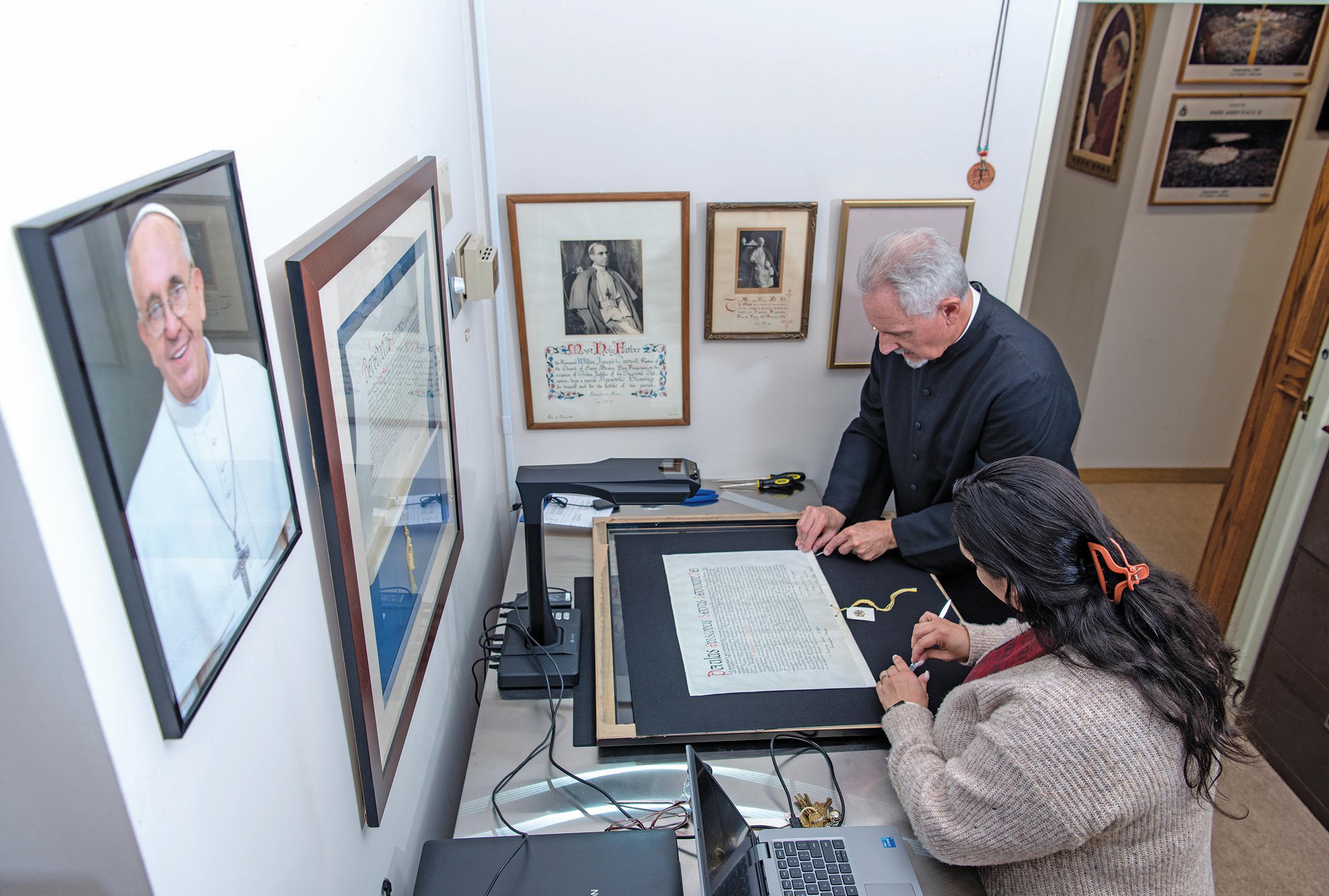 The archives are home to the original founding Vatican documents of the diocese's creation and appointment of Bishop William Johnson, one-of-a-kind documents.