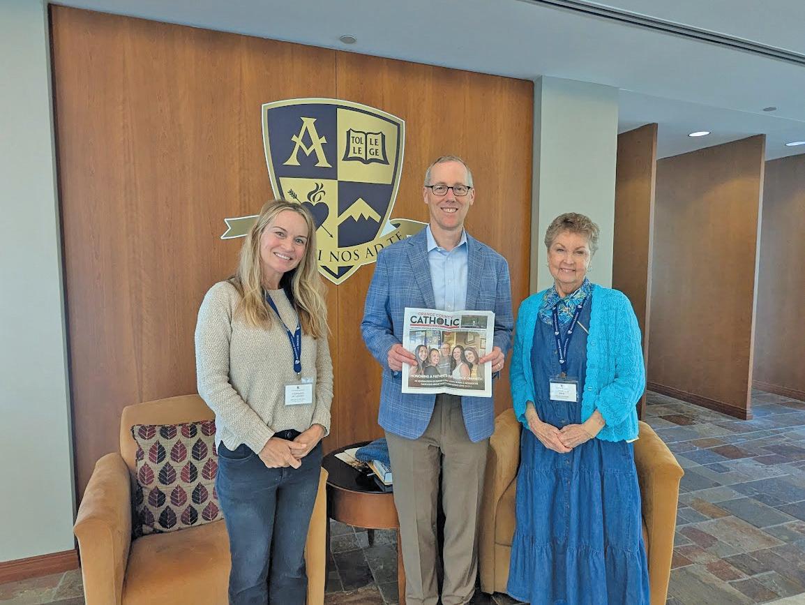 Stephanie Mulhern, sixth-grade Religion teacher at St. Edward the Confessor Catholic School in Dana Point, and her mother, Mary Penny Rice, a catechist at St. Nicholas Parish School of Religion in Laguna Woods, visited the Augustine Institute in Florissant (St. Louis) Missouri for a fabulous three-day retreat with seminars instructing us on Lectio Divina, which we can now implement in our classrooms this fall. Holding the OC Catholic newspaper is the CEO and professor Dr. Tim Gray at the Institute who publishes both the Amen App and the amazing Formed publications everyone can receive each day! Trip of a lifetime!