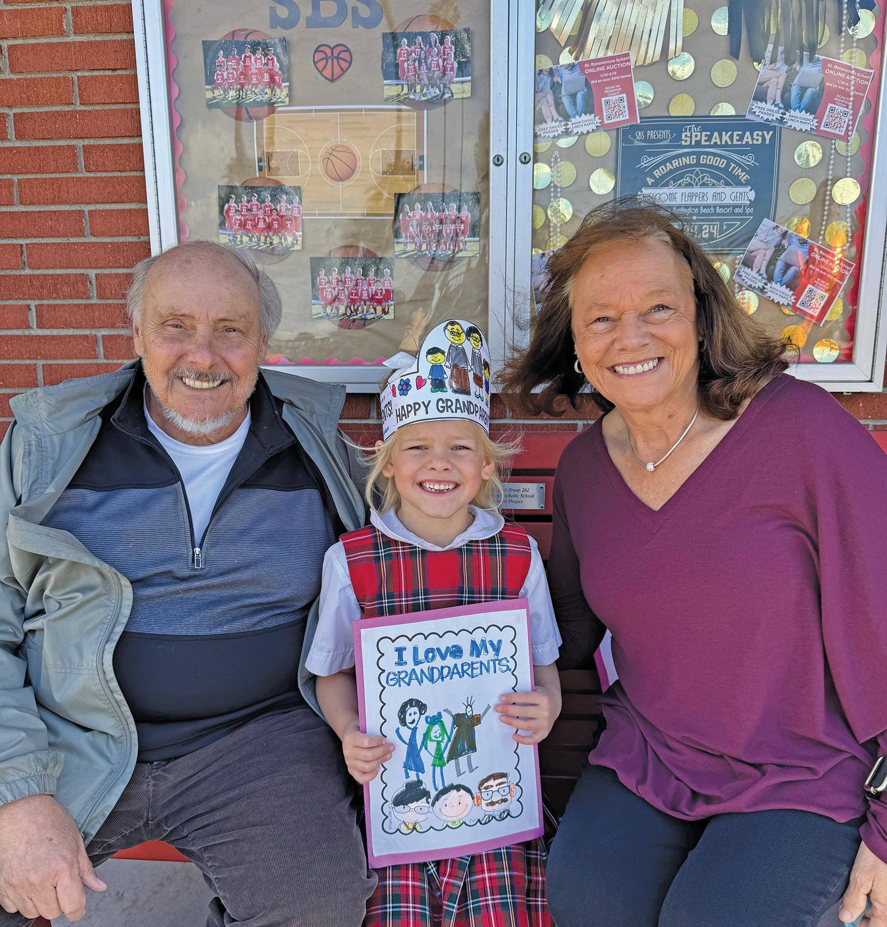 GRANDPARENTS AND SPECIAL PERSONS DAY IS CELEBRATED AT ST. BONAVENTURE CATHOLIC SCHOOL DURING CATHOLIC SCHOOLS WEEK. PICTURED: ERIN PAGANO AND HER GRANDPARENTS MICKIE AND TONY PAGANO. PHOTO COURTESY OF ST. BONAVENTURE CATHOLIC SCHOOL