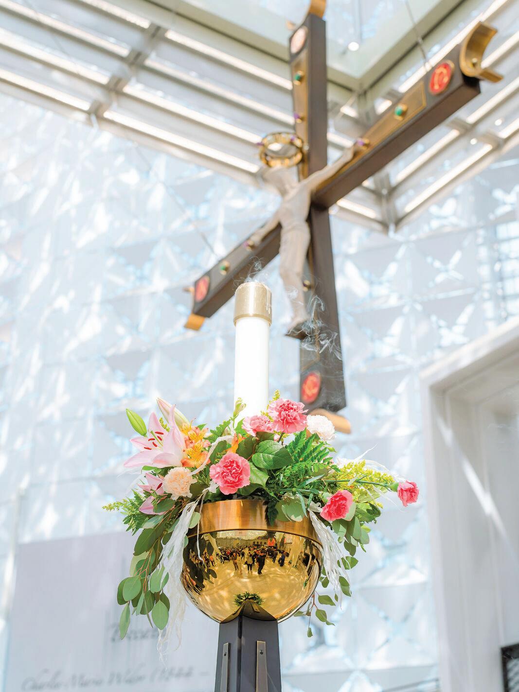 AN ALTAR CANDLE ON EASTER SUNDAY AT CHRIST CATHEDRAL, 2023. PHOTO BY IAN TRAN/DIOCESE OF ORANGE