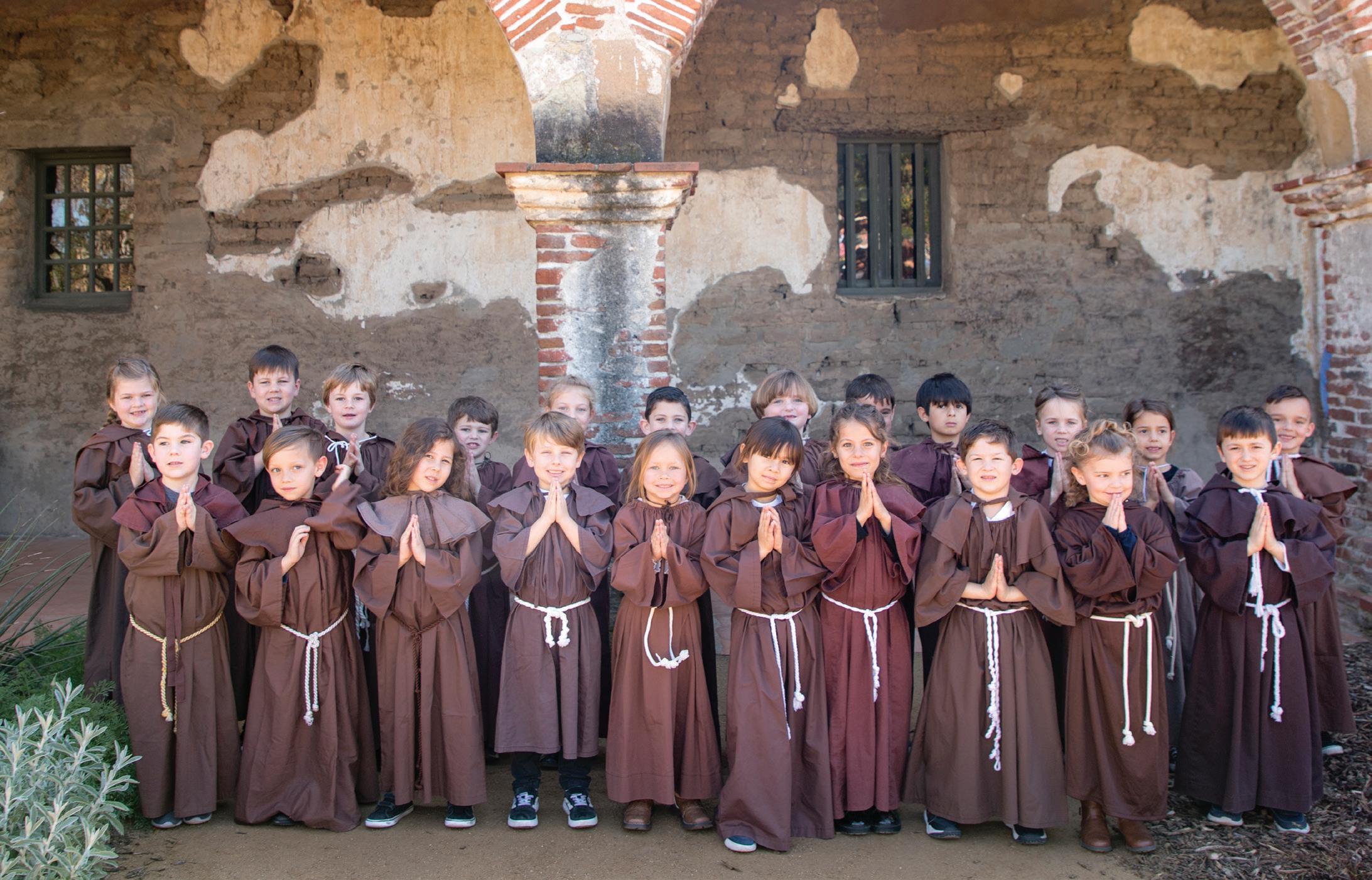 For Mission Basilica students, they begin the tradition dressed as monks in kindergarten, then don colorful swallows costumes in first grade. Each grade