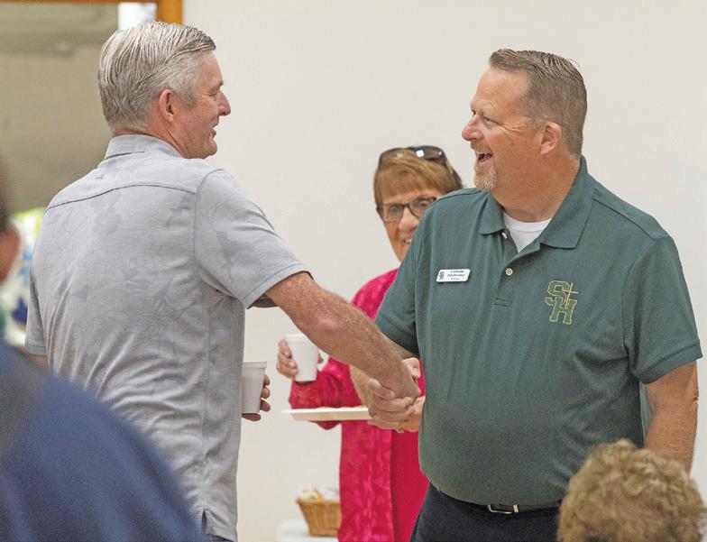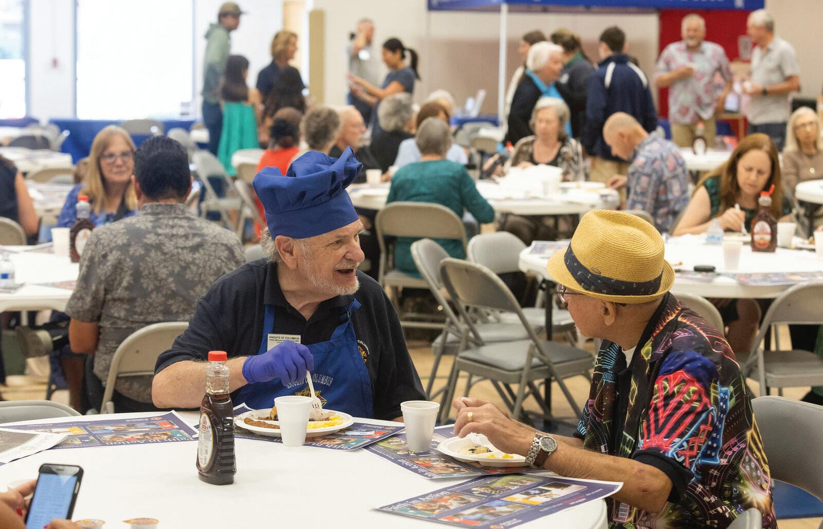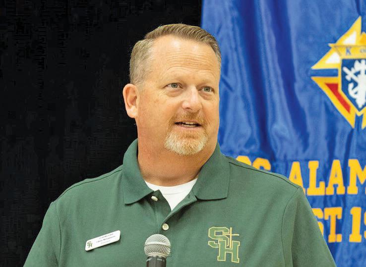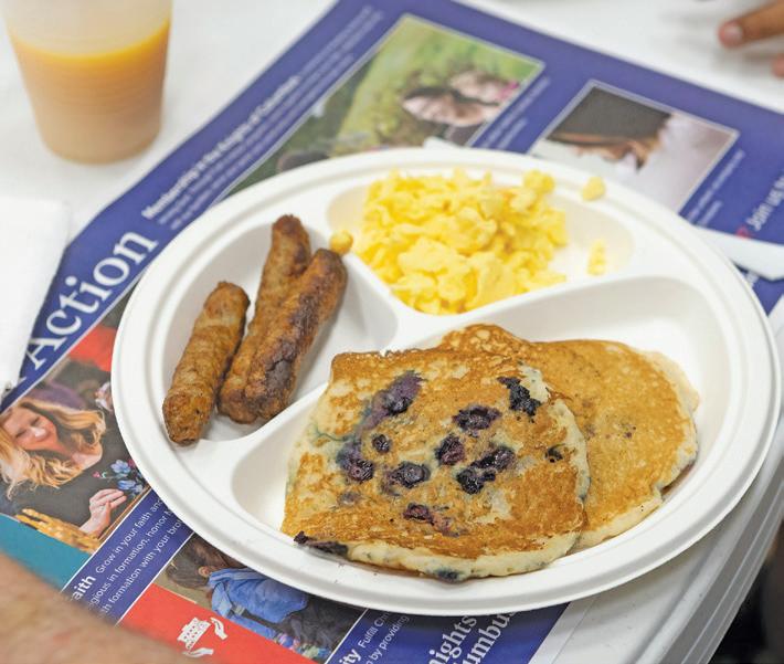 ST. HEDWIG IN LOS ALAMITOS WELCOMED ITS STUDENTS BACK TO CAMPUS ON AUG. 26, BUT MANY SCHOOL FAMILIES JOINED PARISHIONERS THE DAY PRIOR FOR A PANCAKE BREAKFAST HOSTED BY THE KNIGHTS OF COLUMBUS. ALONG WITH ENJOYING A TASTY COMMUNITY MEAL, STUDENTS AND THEIR PARENTS GOT A CHANCE TO MEET THEIR NEW PRINCIPAL, MR. CHRIS MCGUINESS. PHOTOS BY DREW KELLEY/DIOCESE OF ORANGE