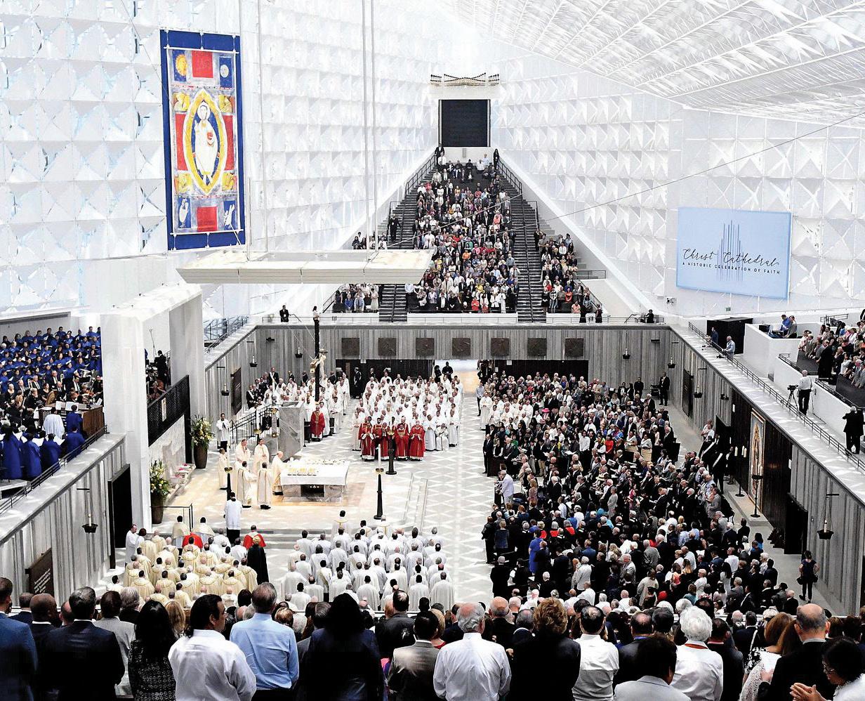 TWELVE YEARS AGO, our Diocese changed its future forever when, by the grace of God and many faith-filled believers, we completed our purchase of the Crystal Cathedral. Soon thereafter, we began our transformation of what was already a tremendous place: a 34-acre campus of art and architecture renowned the world over. What was the Crystal Cathedral, a Protestant megachurch, became Christ Cathedral — the spiritual home of the faithful gathered around our Bishop and a major center of Catholic worship for the West Coast.