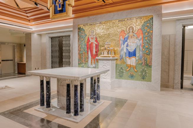 See pages 22 and 23 for more information on the different elements of the altar area, including the altar, reliquary, altar mosaic and tabernacle.