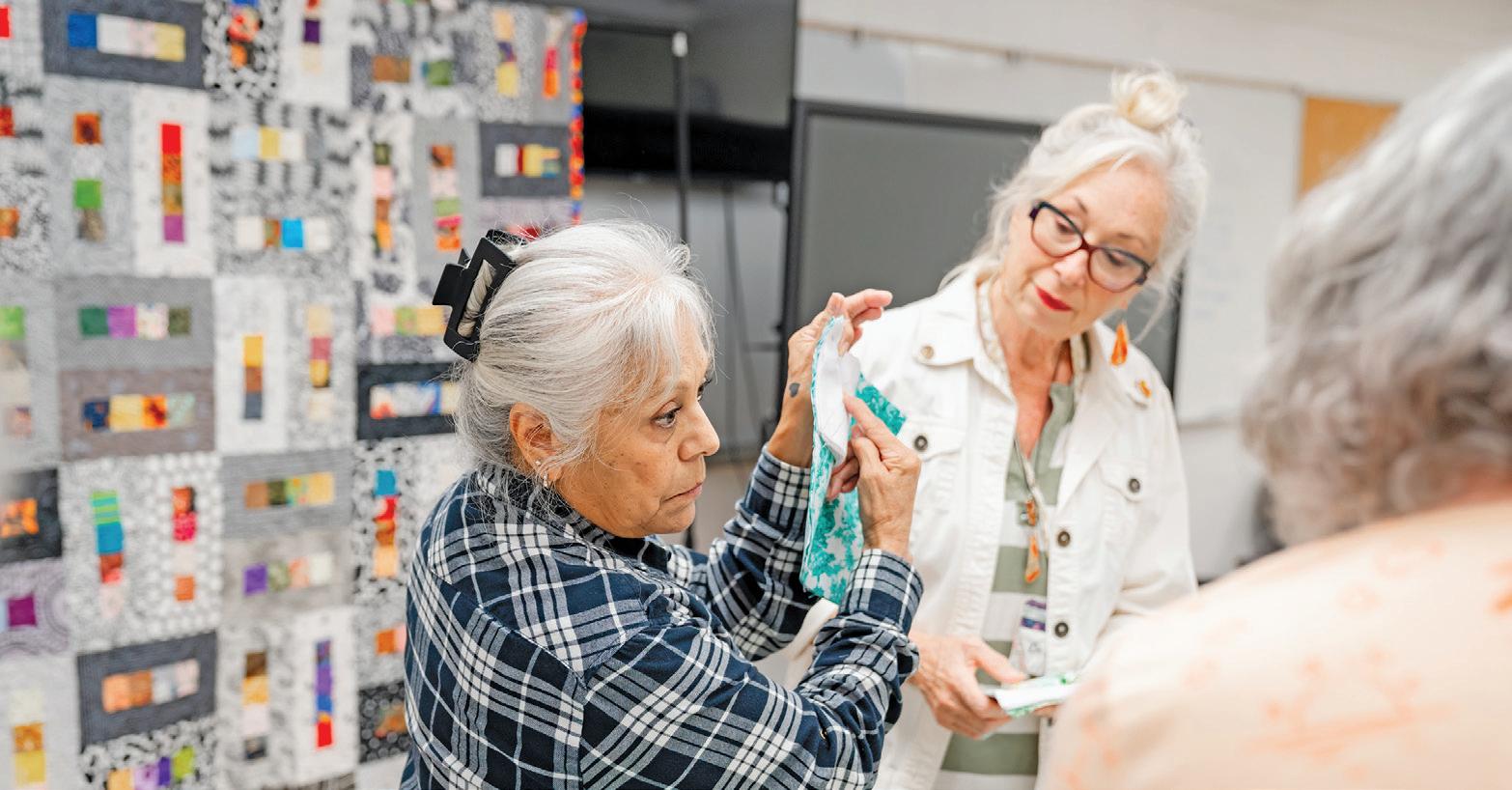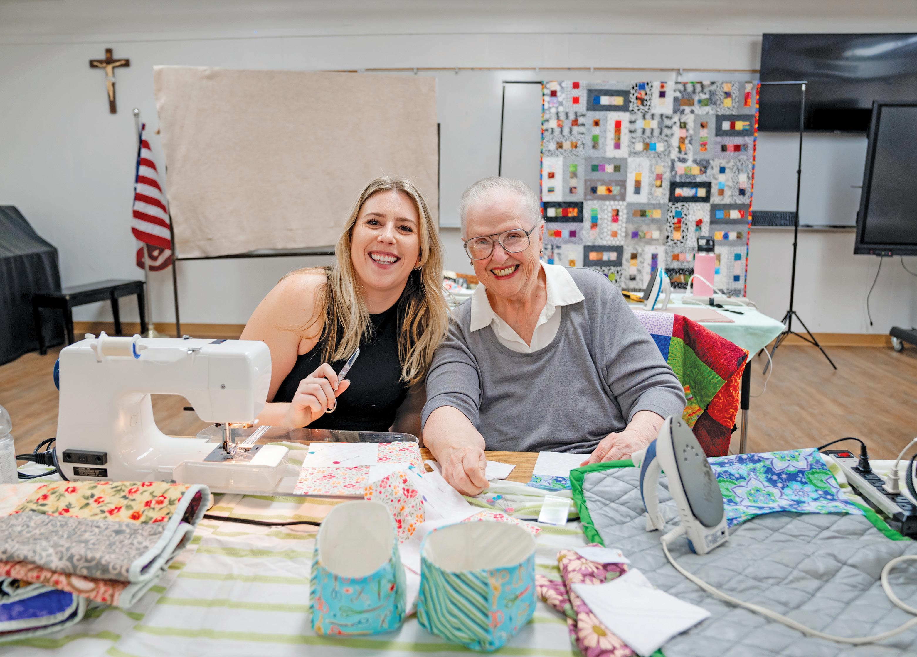 A DIFFERENT MEMBER OF THE QUILTING CLUB LEADS THE MEETINGS EACH MONTH. PICTURED: VIRGINIA OSTIZ AND DEBBIE BEEN.