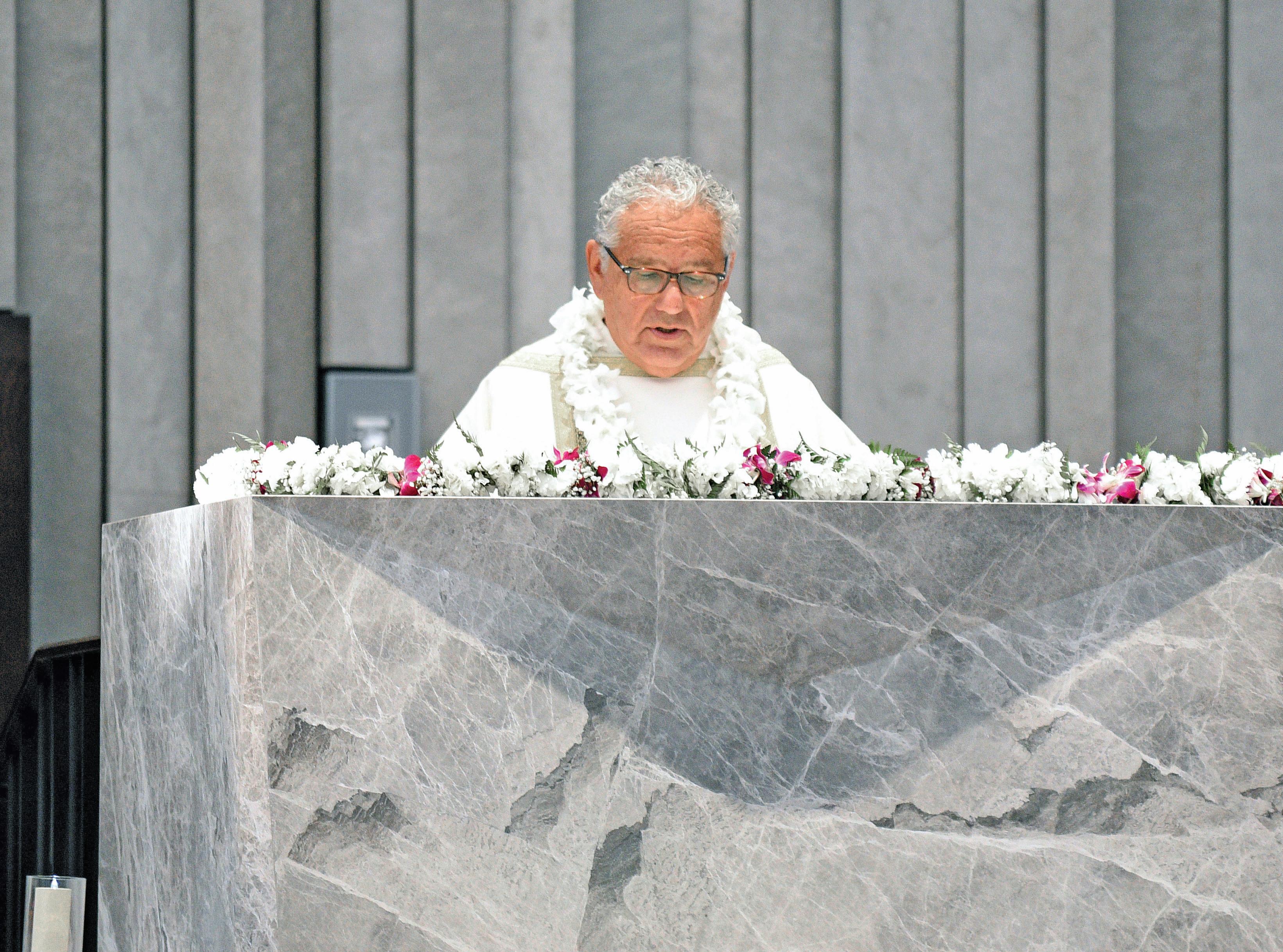 DEACON CHAVEZ OFFERS COMMUNION DURING MASS ON JULY 21, 2019. COURTESY OF THE DIOCESE OF ORANGE