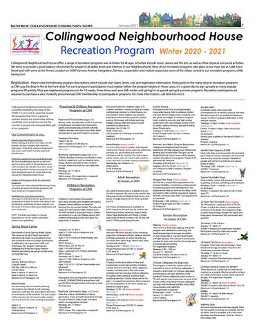 Collingwood Neighbourhood House Recreation Program Winter 2020 - 2021