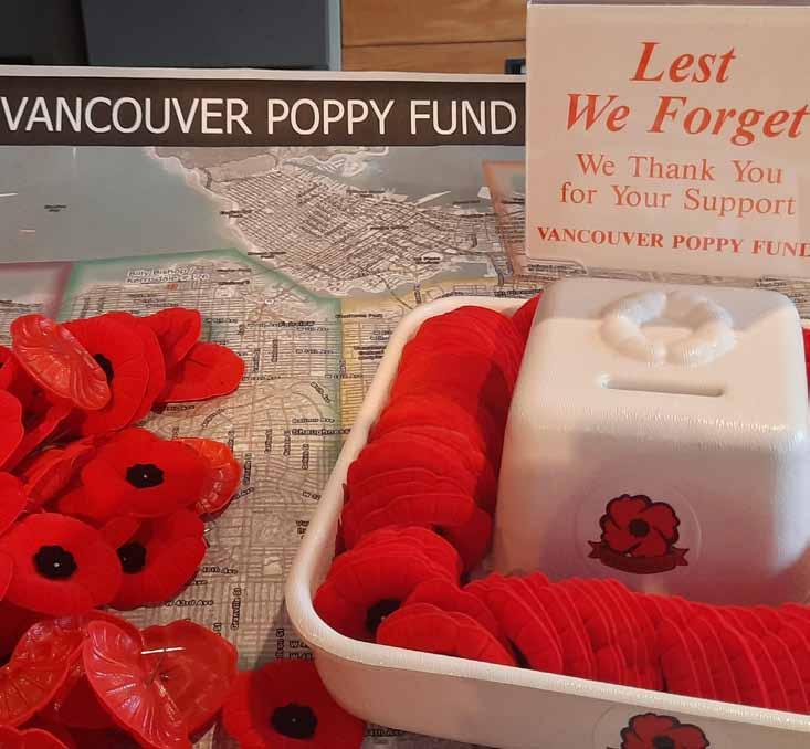 “The poppy campaign runs from October 28 to November 11, and we have approximately 150 trays going out to local businesses that you’ll see at the cash registers. We also have members of the Legion that are personally volunteering; many of those are veterans as well, and you’ll see them on the streets. We also have the RCAC Squadron 59 helping us tag in front of the Vancouver Canucks home games on November 1st, 3rd and 5th. We will also be tagging outside BC Place before the BC Lions game on Sunday, November 6th.”