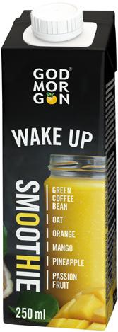 Täyteläinen God Morgon Wake Up smoothie on helppo tapa aloittaa aamu. Smoothiessa on täyttävää kuitua hedelmistä, marjoista ja täysjyväkaurasta. Siinä on myös piristävää kofeiinia vihreistä kahvipavuista ja 2,5 dl:ssa smoothieta onkin yhtä paljon kofeiinia kuin 1,25 dl:n kupissa kahvia.