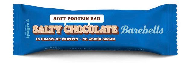 Barebells Salty chocolate patukka on pehmeän samettinen proteiinipatukka ripauksella merisuolaa. Patukka sisältää 16 grammaa proteiinia eikä yhtään lisättyä sokeria.