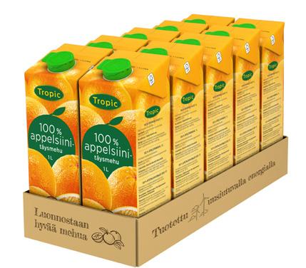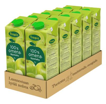 Tropic täysmehut ovat kestosuosikkeja, jotka maistuvat aina yhtä raikkailta. Tropicien täysmehupitoisuus on 100 % ja ne ovat makeuttamattomia sekä lisä- ja säilöntäaineettomia. Täysmehut ovat nyt uudessa, käteen sopivassa pakkauksessa! Tiivisteestä valmistettu omenatäysmehu.