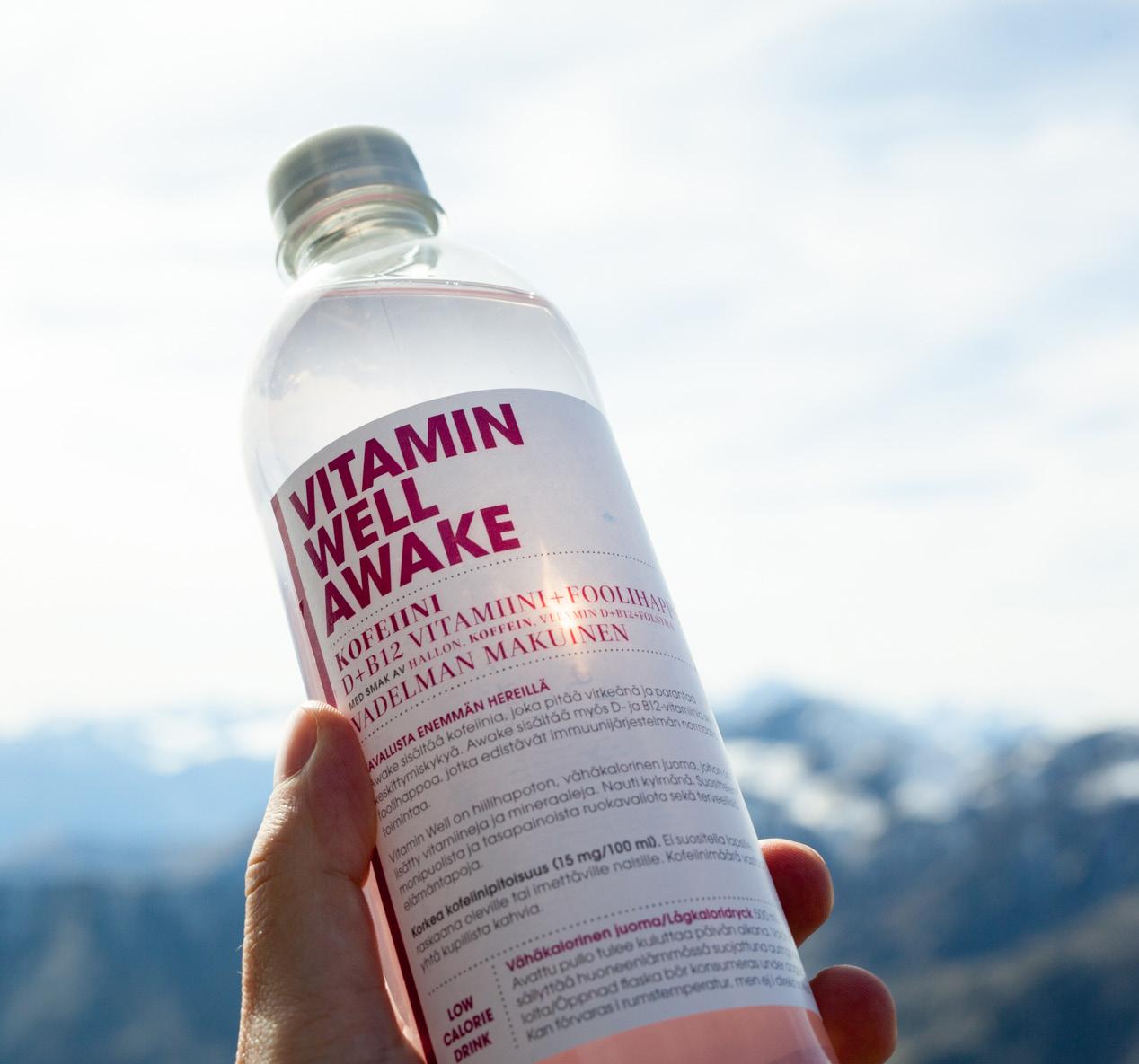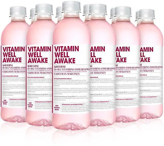 Vitamin Well Awake on vadelman makuinen virvoitusjuoma. Vitamin Well Awake sisältää kofeiinia, joka pitää virkeänä ja parantaa keskittymiskykyä.