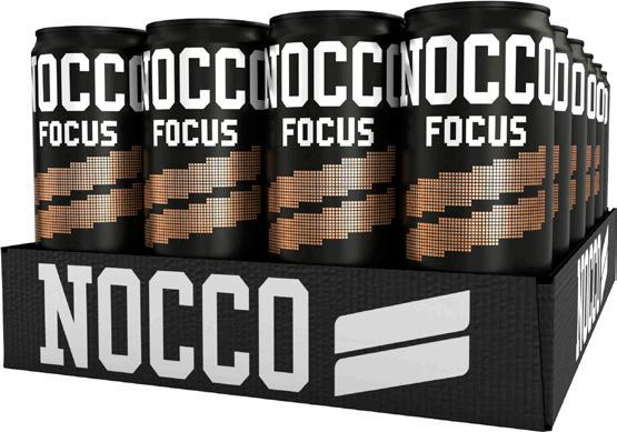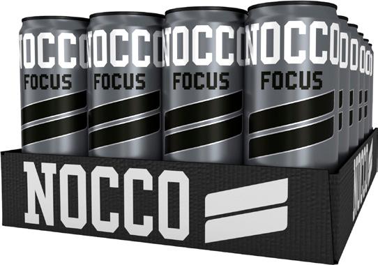 NOCCO Focus – Colan makuinen energiajuoma, joka on hiilihapotettu ja sokeriton (makeutettu sukraloosilla).
