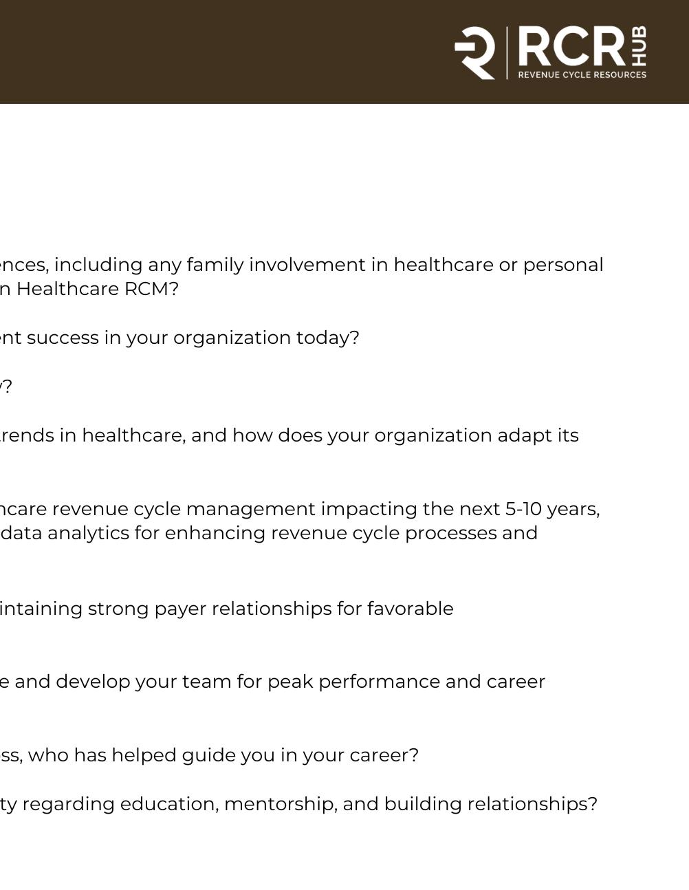 We’re looking forward to a productive and engaging interview session. Your insights and perspectives will be valuable for our entire RCM CommUnity! We appreciate your time and contribution.