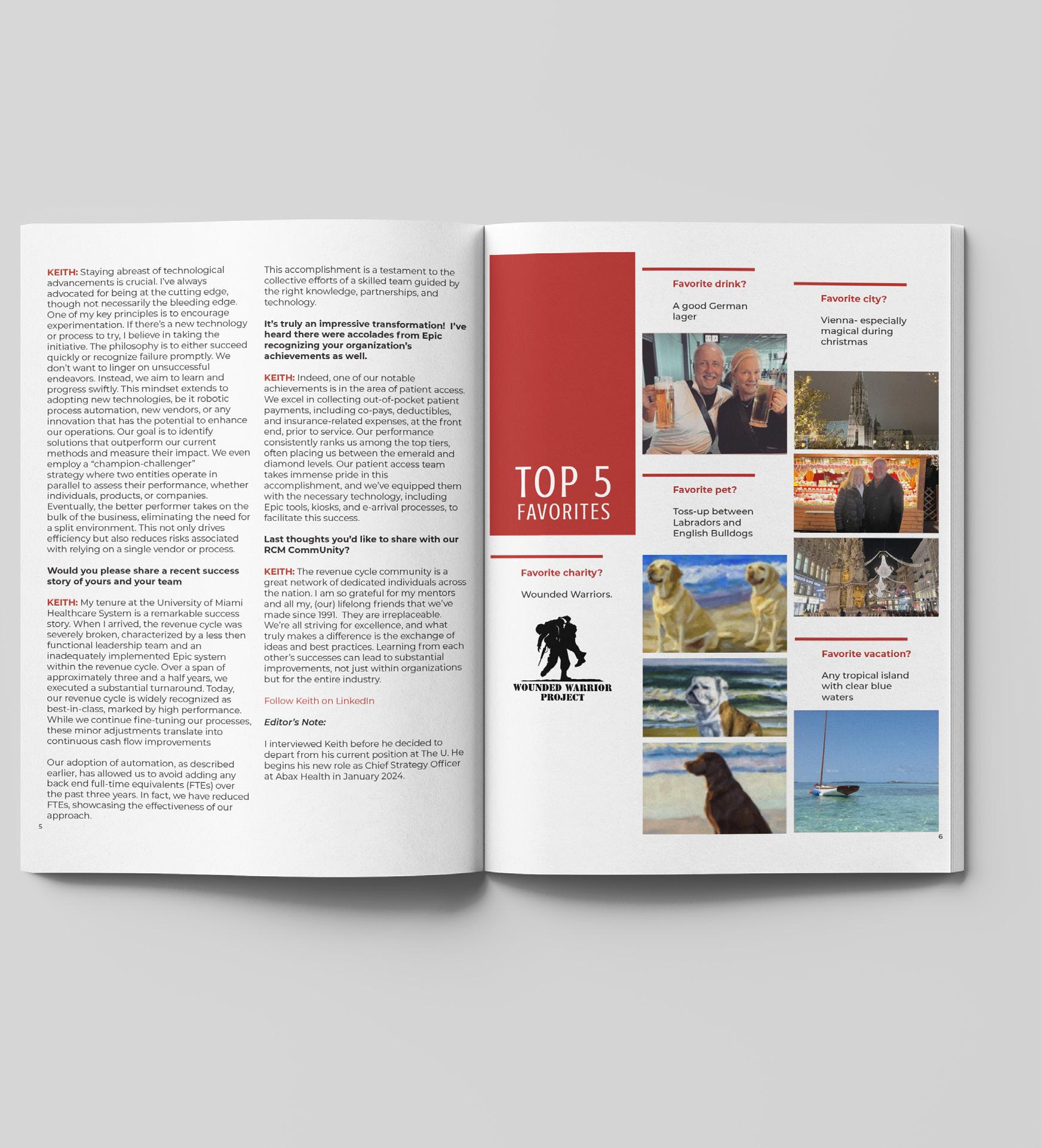 But we don’t stop there. RCM Connections goes beyond the professional, offering a personal touch with the chance to share your five favorite things. It’s an excellent way for your peers and the industry to get to know the person behind the professional persona, fostering a sense of community and connection.