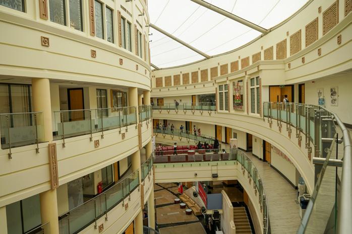 Today, the purpose-built campus – which features a host of teaching spaces, laboratories, offices, a library, a restaurant, a dedicated student support centre and