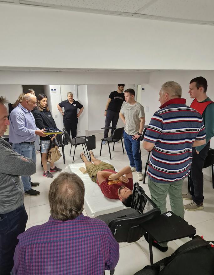 I got involved in Ukraine through my work as an instructor on the European Trauma Course (ETC), which is designed to teach trauma team leadership skills and trauma team management. e way in which the health services are organised in Ukraine is quite di erent to Ireland. Traditionally, they did not have emergency rooms, resuscitation bays and major trauma centres. Following the outbreak of the war, the Ministry for Health decided they wanted to reorganise the way in which healthcare was delivered with a particular focus on trauma, and emergency department trauma team response. ey approached the UN and WHO for help in identifying the best training, and they recommended the ETC. en the ETC organisation was seeking instructors to go to Ukraine. e way the course works is that you deliver the course and the instructors identify people who would make good instructors, and they then do three courses as a trainee instructor before they are quali ed to instruct themselves. e plan was to go out to Ukraine to run a course, identify potential Ukrainian instructors, and then run three more courses.