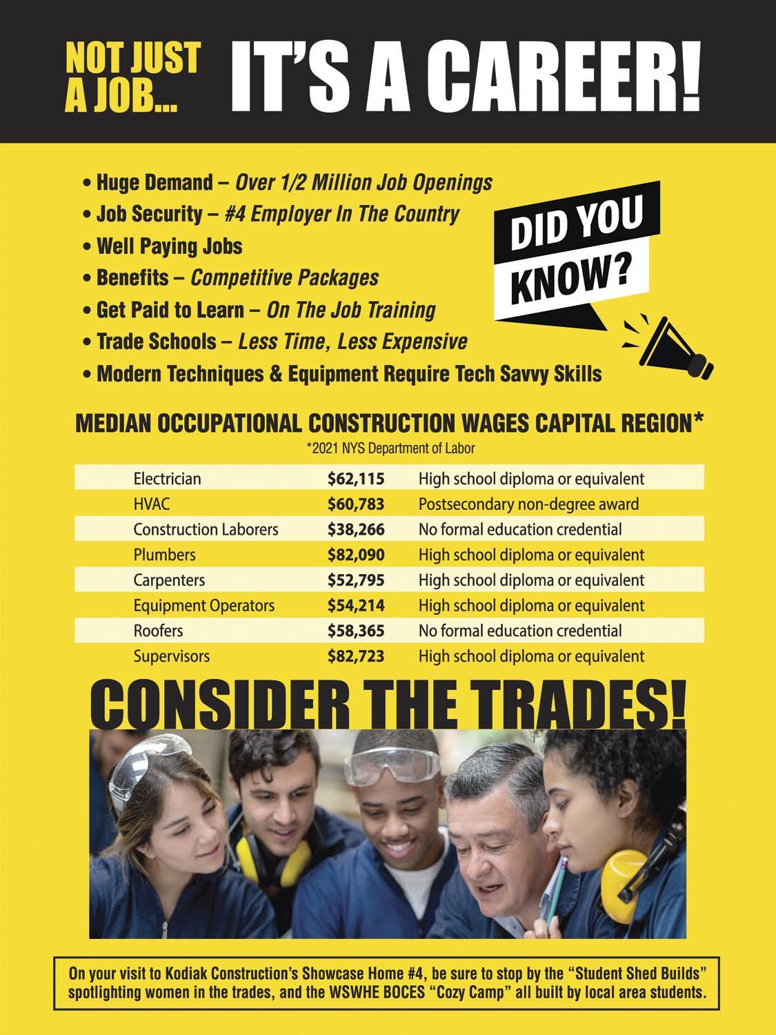 & JUSTIN Unique Features • Stamped concrete porch and patio • Quartzite kitchen countertop, granite countertops in bathrooms • Walk-in pantry with custom shelving • Smart home speakers with a Sonos Music Amp • Second floor loft with built-in workstation Energy Efficiency, Green Technology, etc • 95% efficient forced air heating & cooling system with programmable thermostat • Energy Star VWD windows and sliding door • Blower door tested to confirm minimized air leaks • LED lighting throughout © Randall Perry Photography Visit Kodiak Construction’s Showcase Home to see the “Student Shed Builds,” spotlighting women in the trades and the BOCES Cozy Cottage,” all built by local area students. Use QR code for directions.