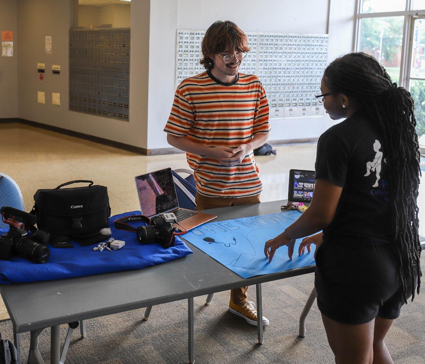 Opposite page: 2023 MSMS graduate Jaiden Ball (Byram) signs an interest form to be included in the upcoming meeting for the Engineering Club. Left: Madison Echols is a Class of 2023 Alumna from Hattiesburg. Right: MSMS Senior Ava Grace Noe (Paris, MS) researched the Record of Apprentices, Bonds and Indentures for Lowndes County, January 1866-October 1870, and portrays Martha Battle Fort. Born into a prominent North Carolina family, Fort moved to Columbus when her family purchased a large tract of land just across the state line in Alabama. Noe’s performance explores the trials Fort faced when her husband died and her second husband engaged in scandalous behavior, which threatened the stability of her family.